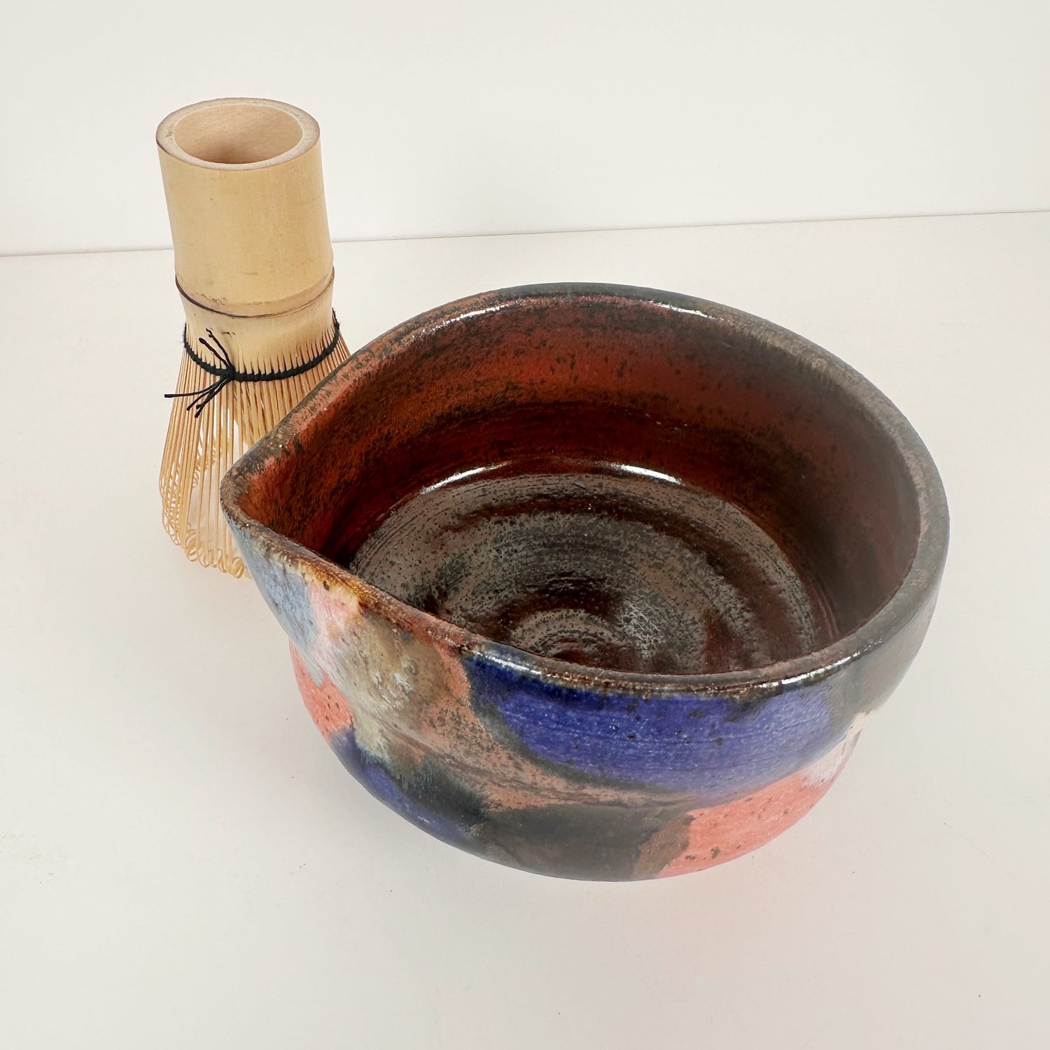 Deep Dark Watercolor Style Stoneware Matcha Bowl with Whisk | Madeleine Schmidt