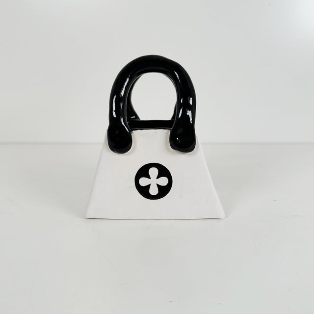 Black & White Purse Vase with Flower Motif | Jessica Walker