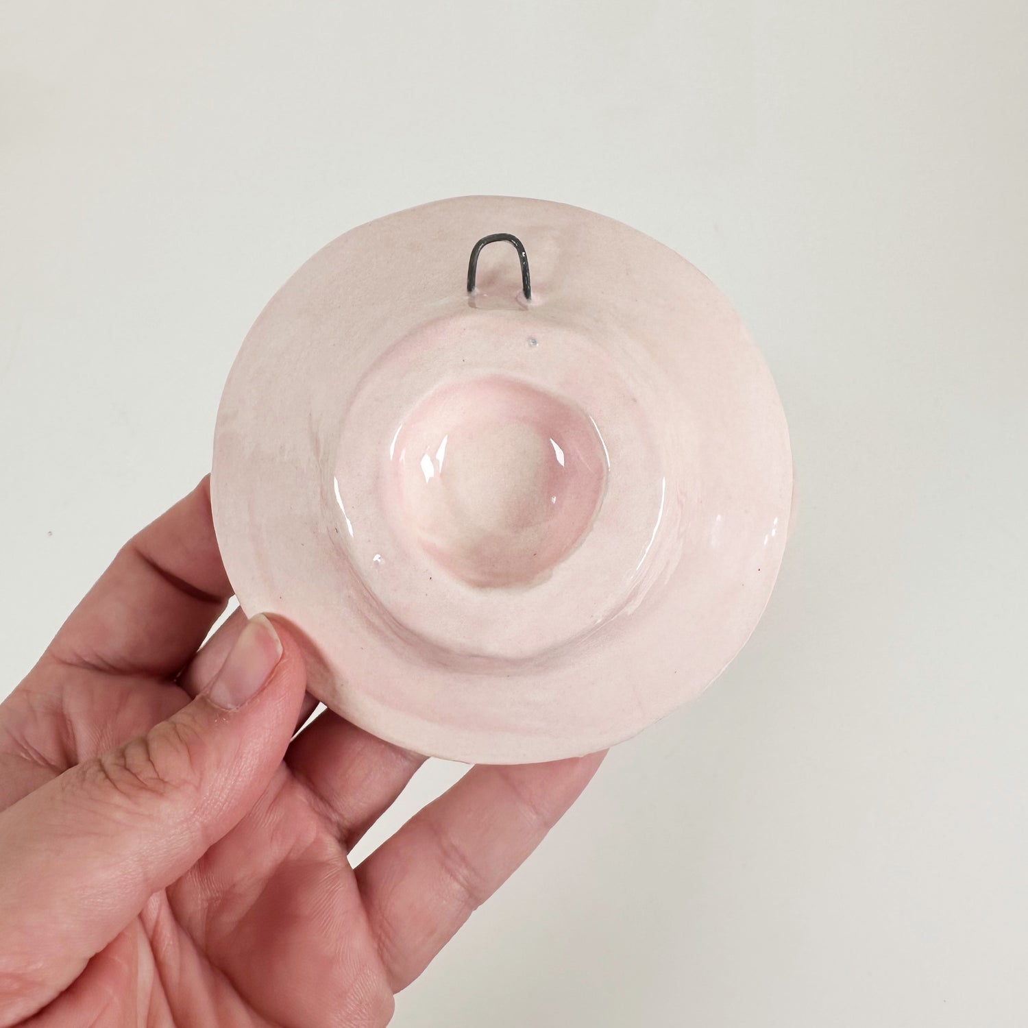 These tiny little dishes feature a hand painted rose pattern! Made by artist Jessica Walker, they each include a small hook on the back so they can hang on the wall.