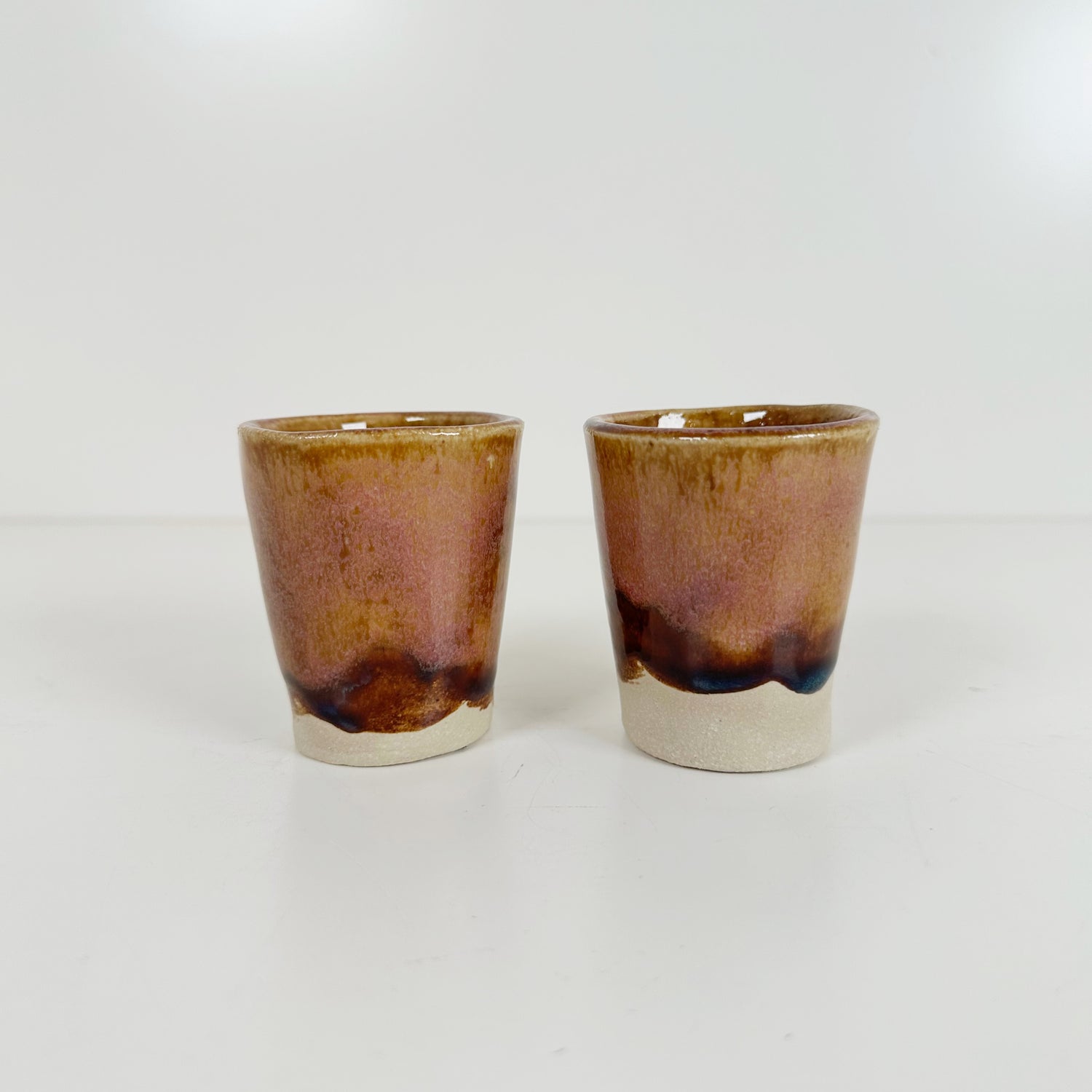 Tan & Dark Brown with a Hint of Pink Handmade Stoneware Shot Glasses | Jessica Walker