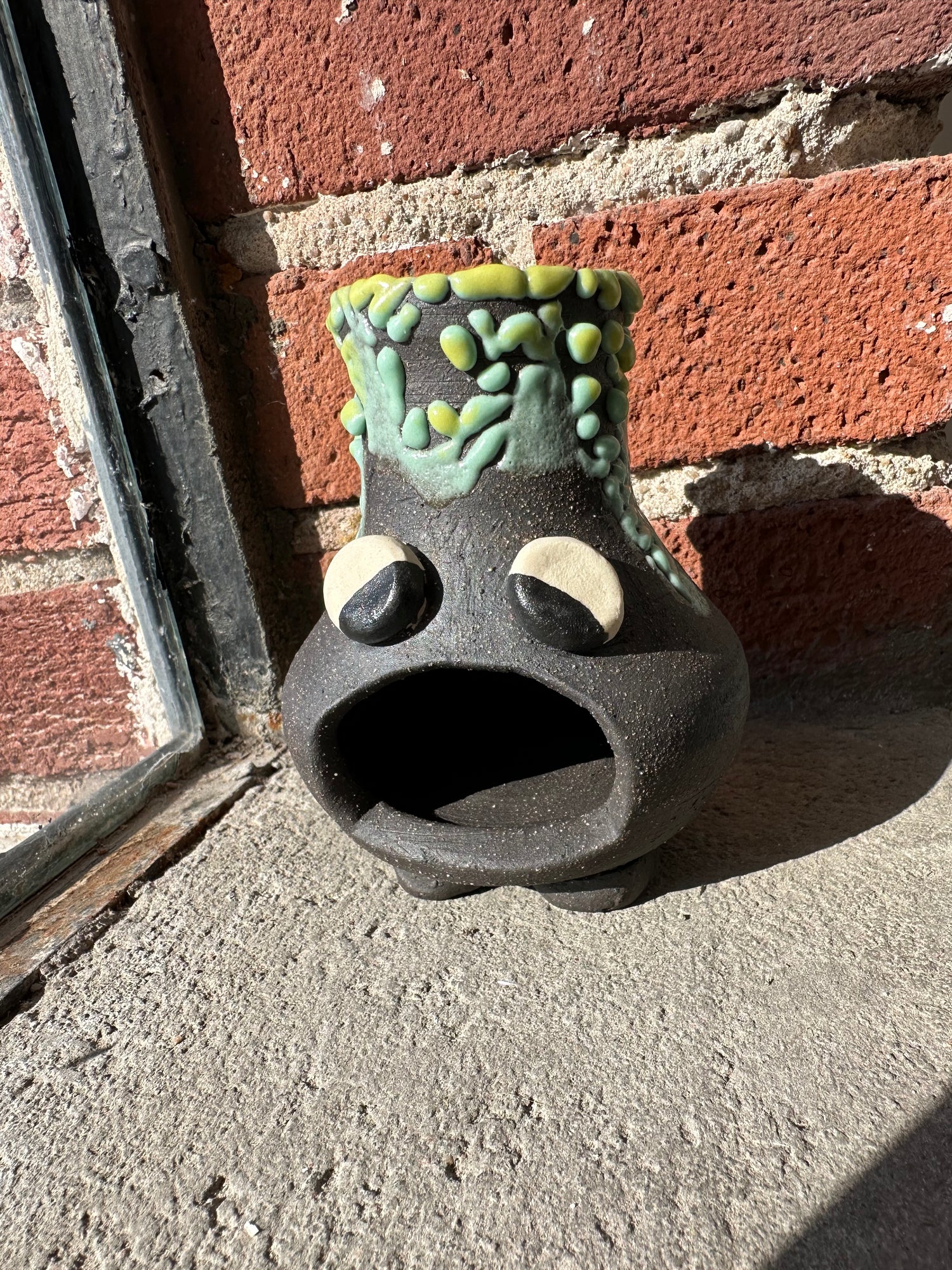 I really enjoy the technical aspects of any of the mediums I work in, and ceramics is no exception. Glaze application is a big focus of my artistic practice. I love dark clay, and I look to create a lot of contrast with glazes. When I'm not making functional ware, I enjoy creating whimsical pieces like the fish vase you see below.
