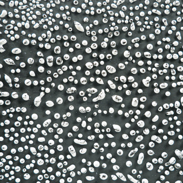CR-12 is a glossy white glaze with black specks that, when fired, crawls into raised shapes of varying sizes and forms. The result is a surface marked by unpredictable, natural patterns that add unique texture and visual interest to each piece. The featured chip image of CR-12 is applied on AMACO No.30 Milk Chocolate Clay.