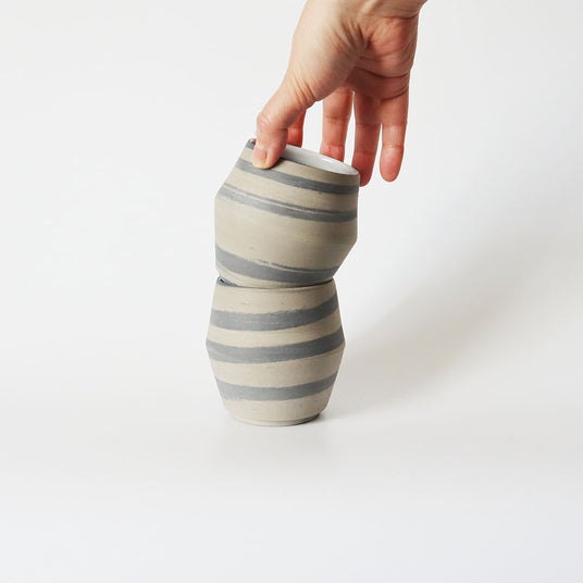 Nerikomi Check Pattern Origami Teacup | Saori M Stoneware