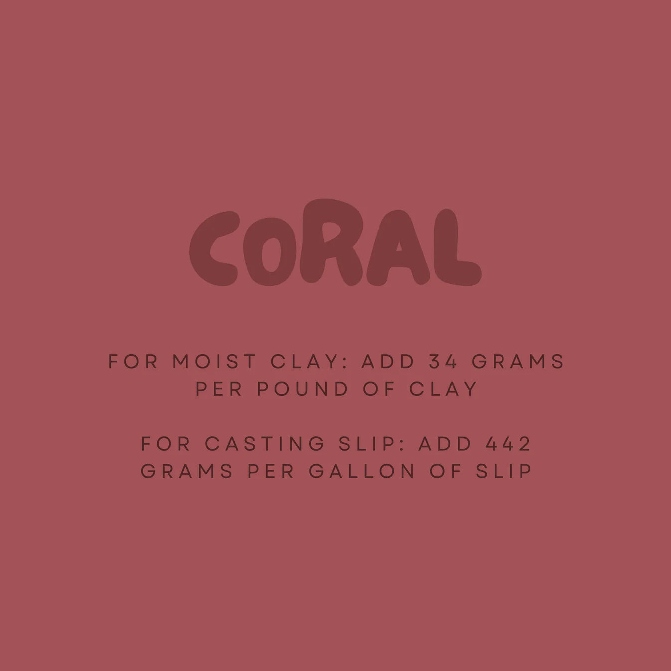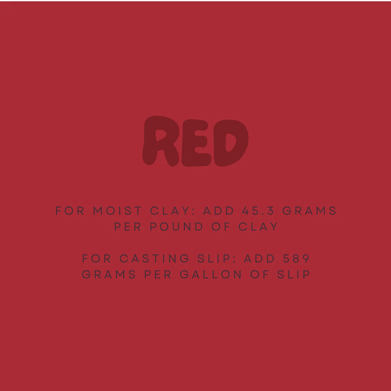 Color results will vary depending on the base clay you choose to create your colored clay from. White porcelain will give the most vivid results. White stoneware can also be used but colors will be less vivid. Buff stoneware can be used to achieve toned down colors. The color shown is the expected result in oxidation firings up to cone 10. Results vary slightly in a reduction atmosphere.