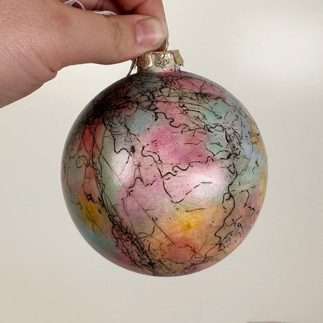 Rainbow Ceramic Globe Ornament with Horsehair Details | Sherry Strickland