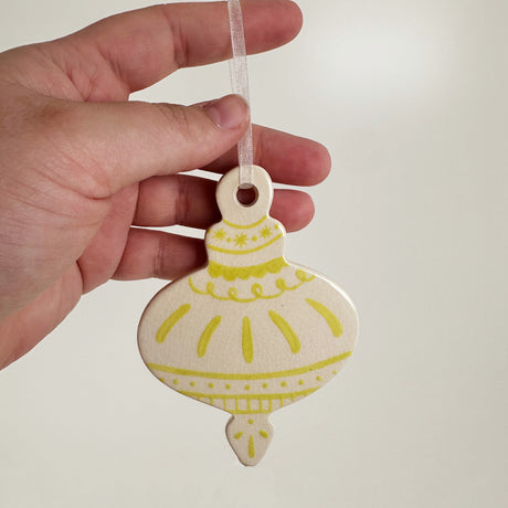 Hand Painted Flat Chartreuse Green Patterned Bauble Ceramic Ornament | Terra Clay