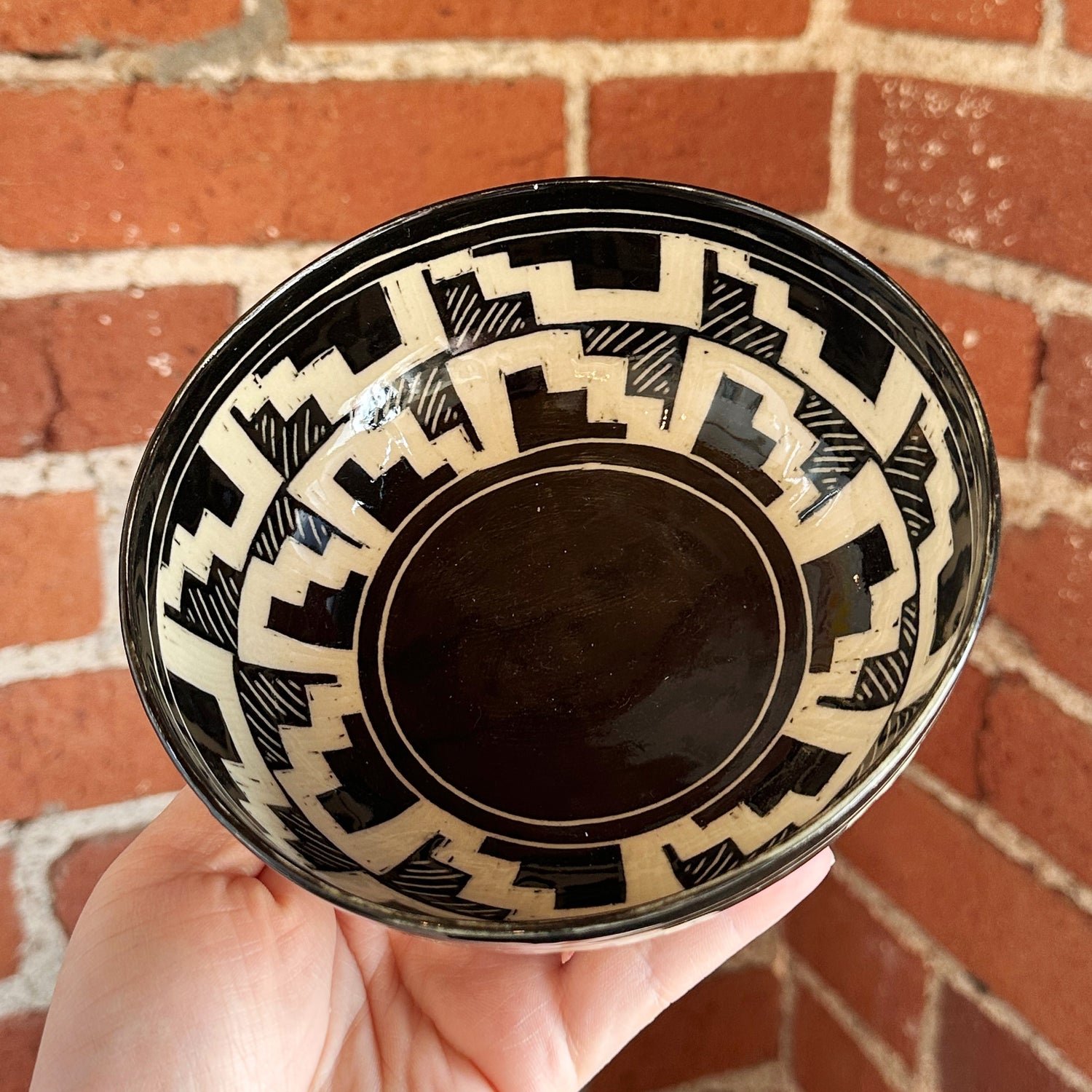 The black basketweave pattern on this inky black bowl was hand carved by Cindy Walker Davidson!