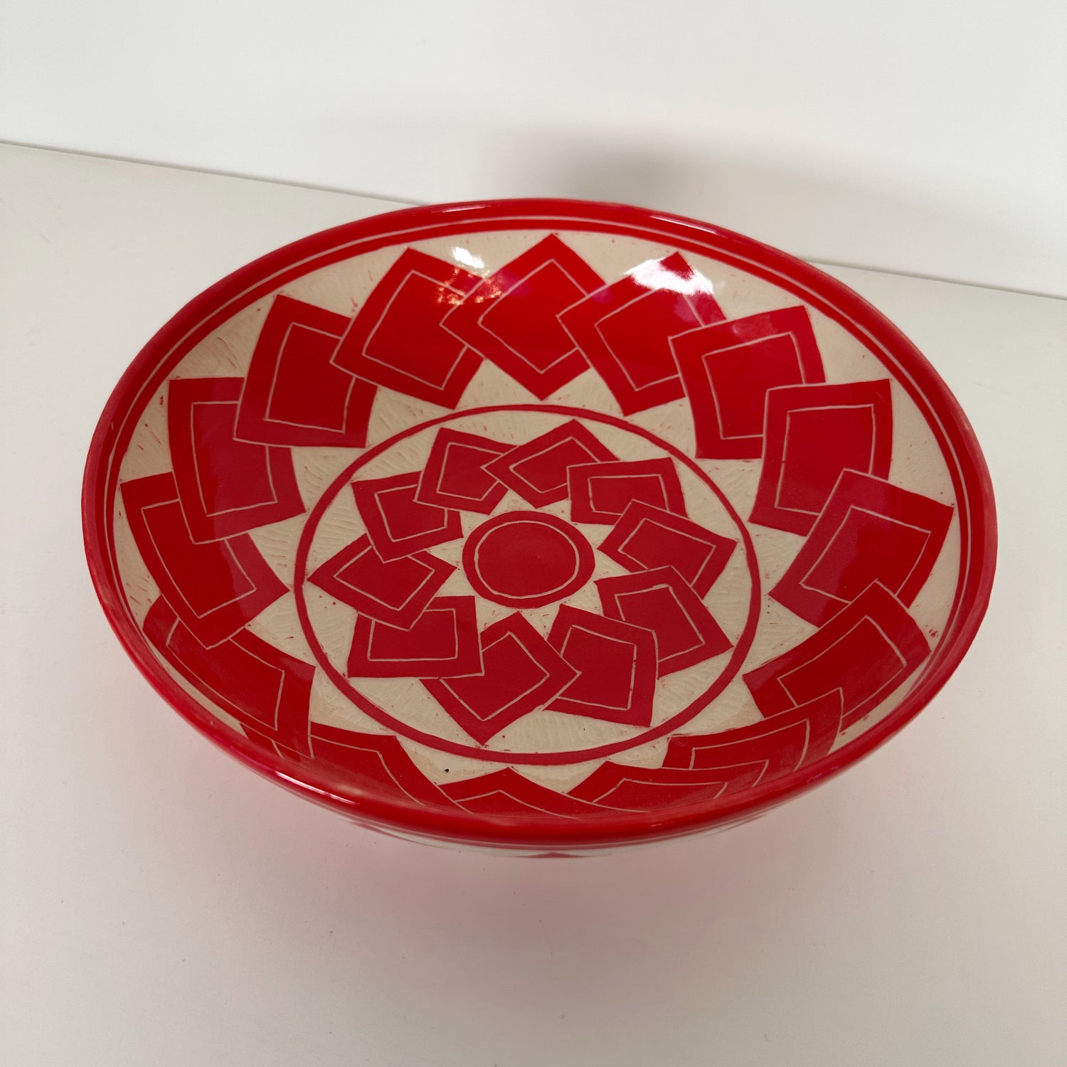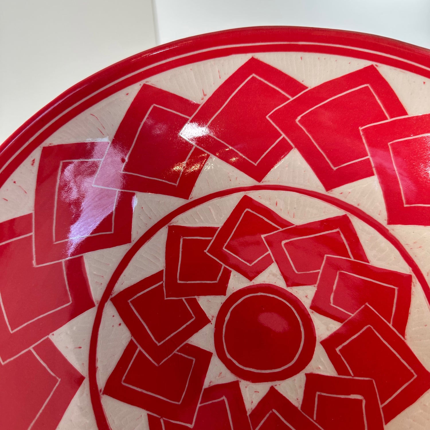 Large Red Tumbling Square Carved Bowl | Cindy Walker Davidson