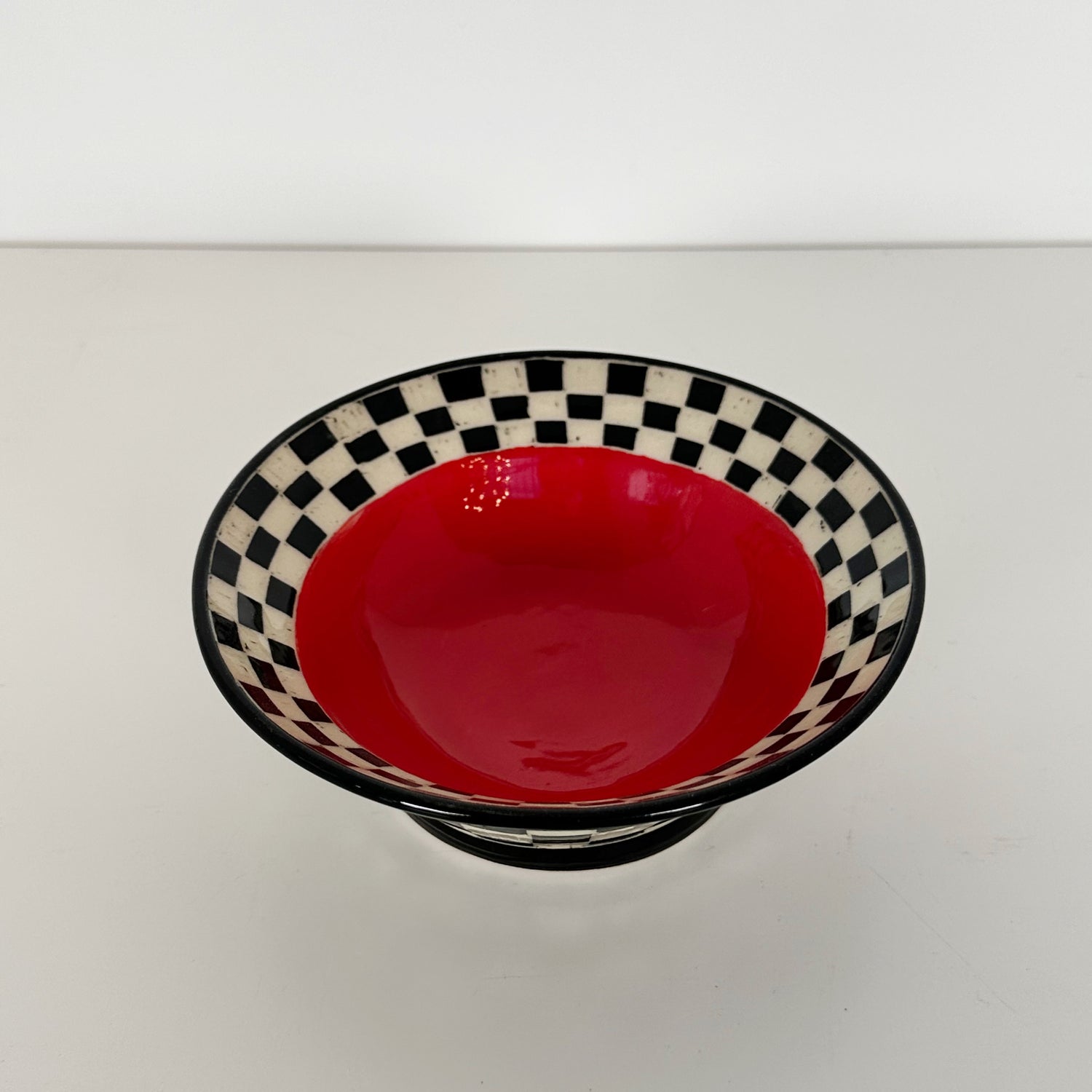 Red & Black Checkered Carved Bowl | Cindy Walker Davidson