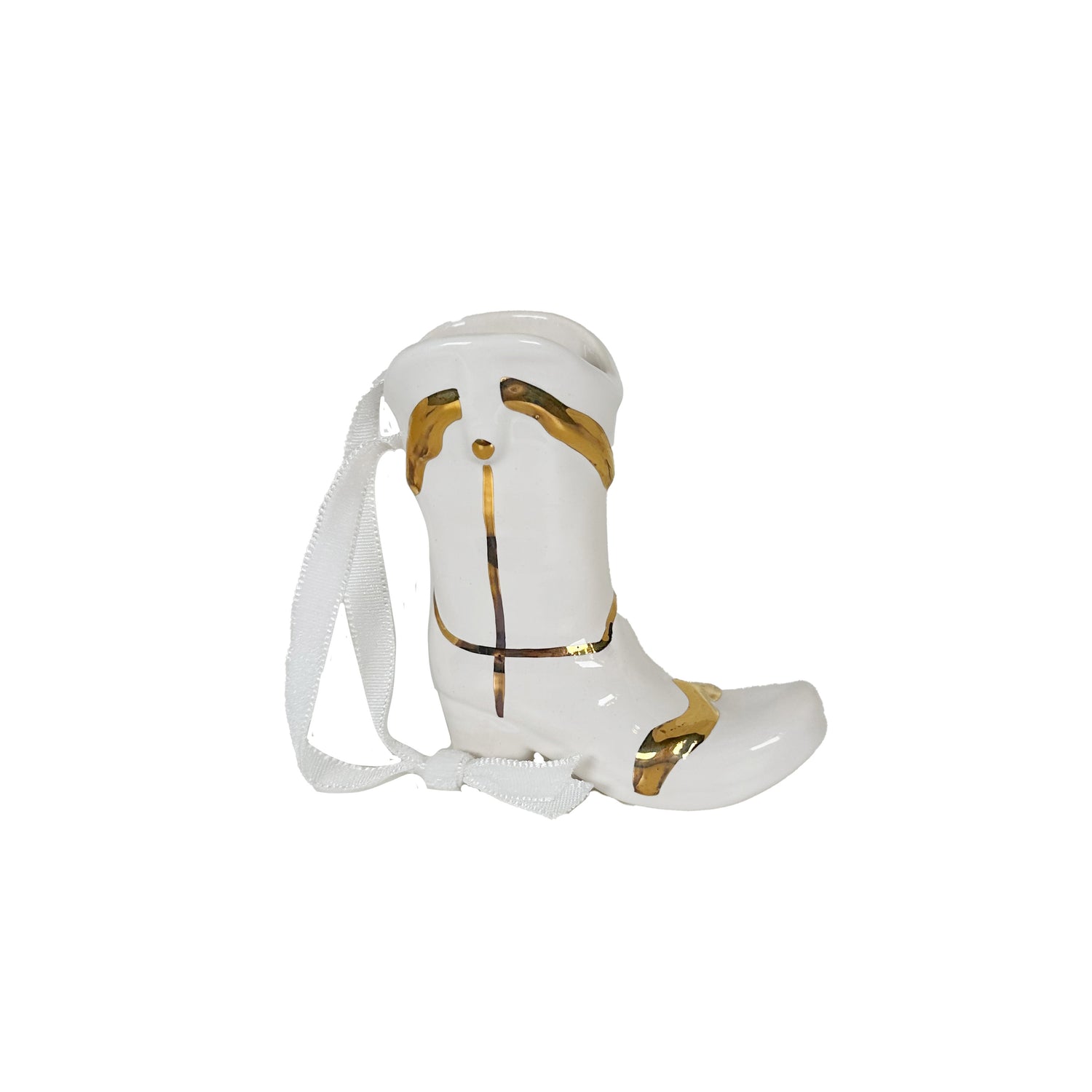 Mini Cowboy Boot Ornament with 22k Gold Details- Snowflake White