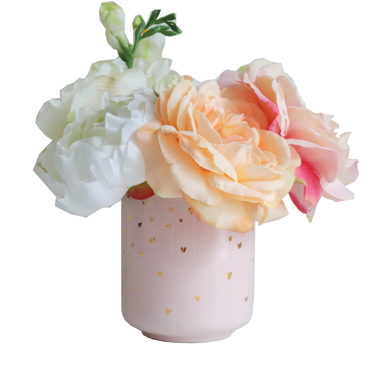 Cottage Floral Pumpkin Jars with 22K Gold Accents in Pink