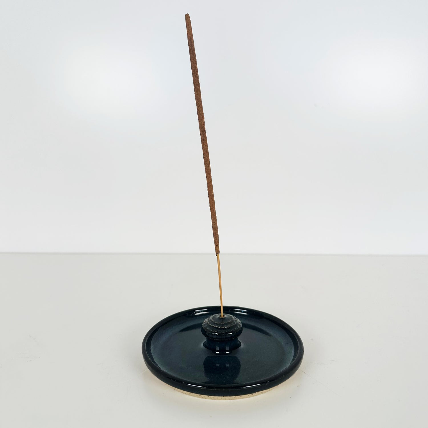 The deep, navy blue glaze on this incense holder is so mesmerizing! The details in the blue really come forward in the light. Pair this handmade piece with your favorite incense for wonderful gift!