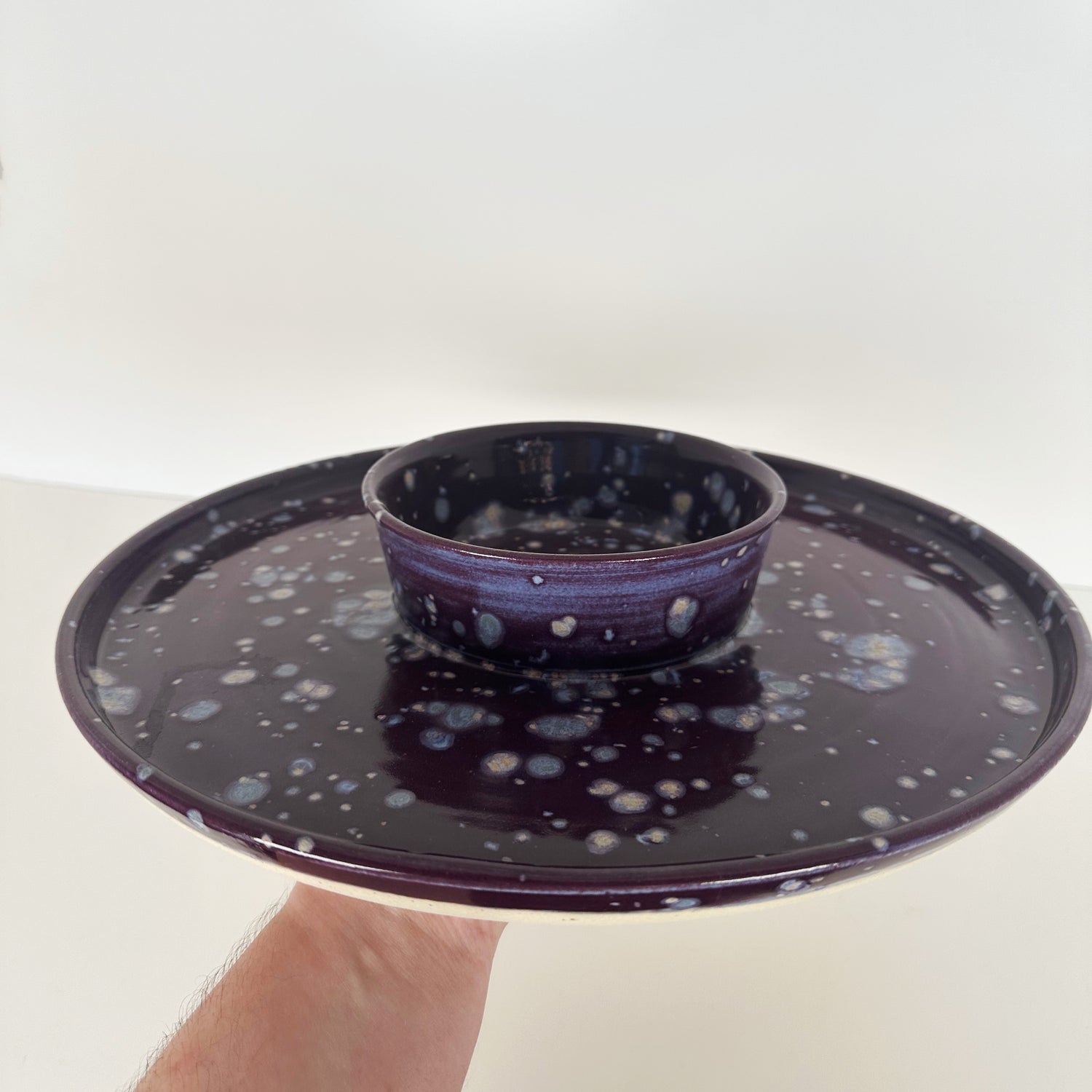 This snazzy, speckled purple chip n' dip is the perfect centerpiece for your next gathering! Handthrown by Mike Teal of Pottery by Mike!