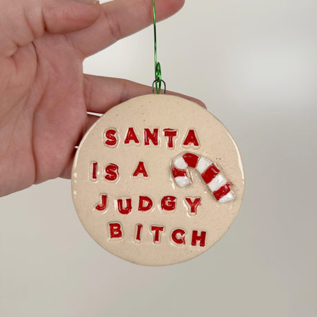 Handpainted Turquoise Oval Santa Ceramic Ornament | Poppy Chick Studio