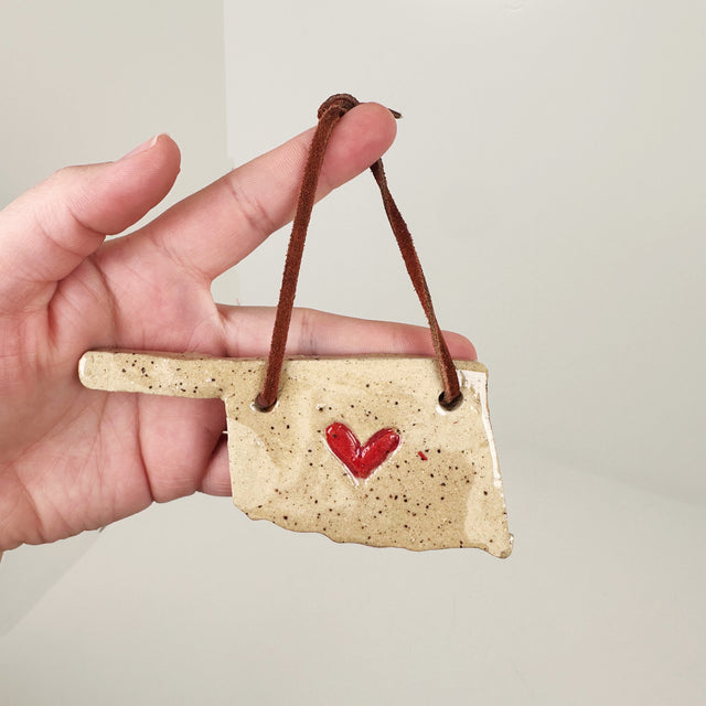 Sandy Oklahoma Shaped Ornament with Heart- A | Triska Pottery