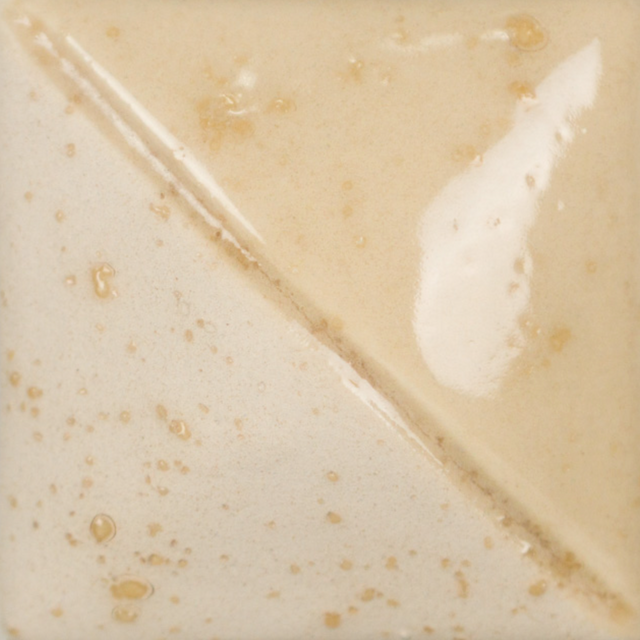 Golden Sand is an off-white matte underglaze base with tiny tan crystals that fire glossy.