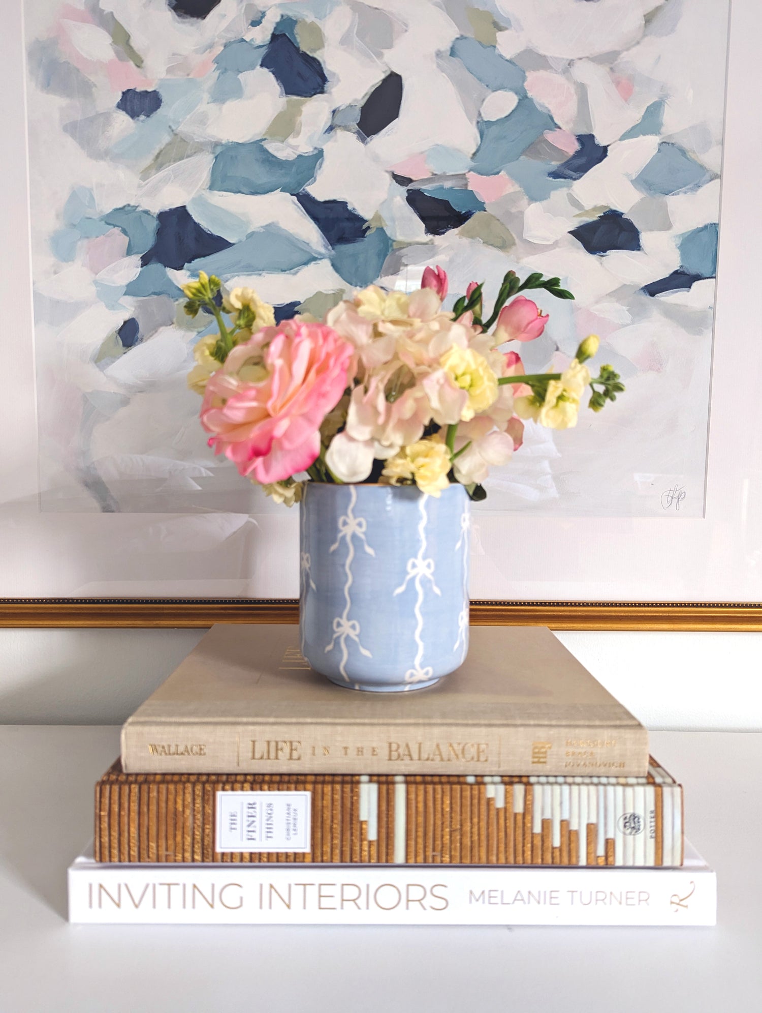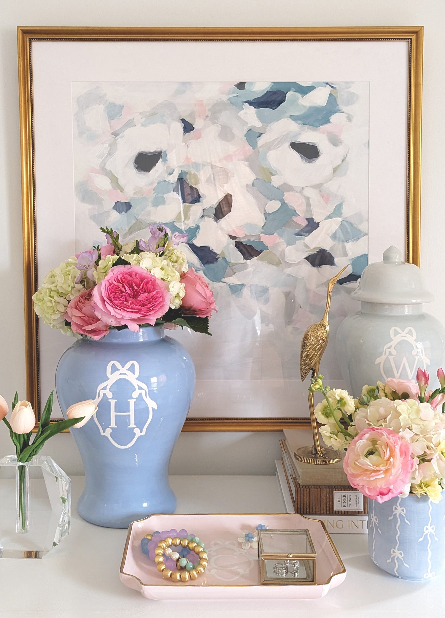 Bows are a classic feminine touch that add a bit of polished charm to anything they adorn. These jars feature stripes of delicate ribbons and darling bows creating a sweet and timeless heirloom piece sure to be enjoyed for years to come. Each jar is hand-made, then hand-painted by a Lo Home artist, so each piece is a unique work of art!