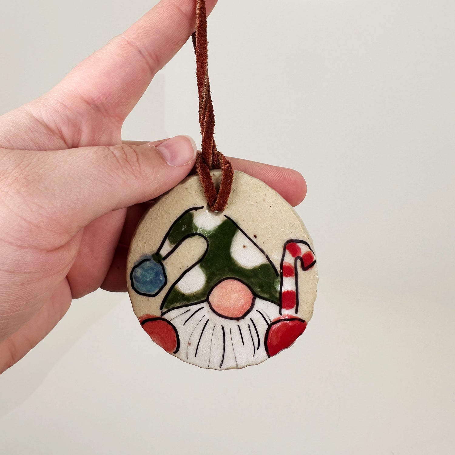 Hand Painted Ceramic Gnome Ornament- F | Triska Pottery