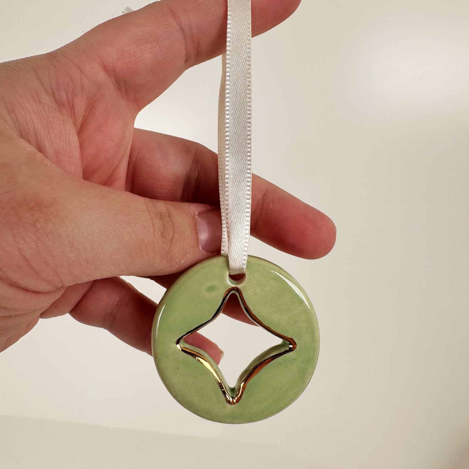 Hand Painted Diamond Cut Out Ceramic Ornament in Sea Foam Green | Terra Clay