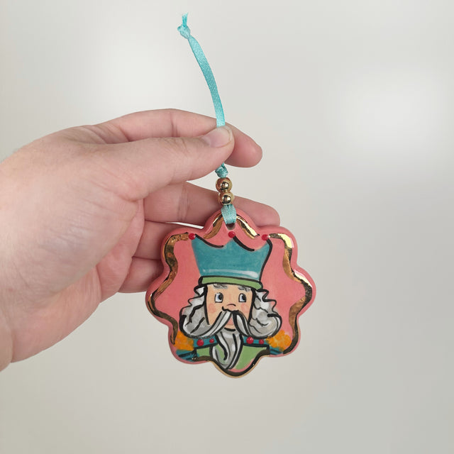Handpainted Pink Scalloped Circle Nutcracker Ornament with 22k Gold | Poppy Chick Studio