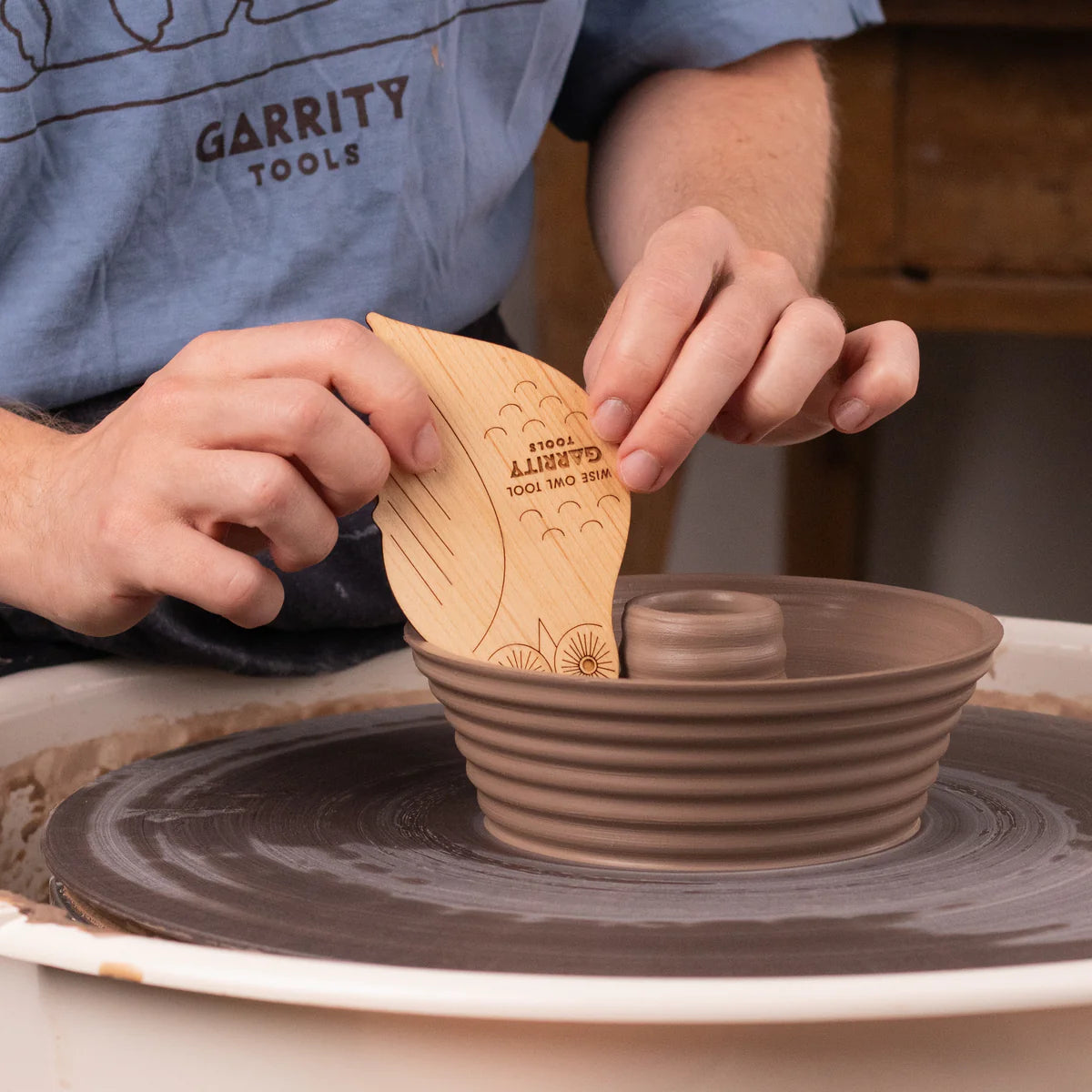 Garrity's Wise Owl pottery tool creates bubbly ridges, forms walls into unique curves, and smooths and rounds the interiors of vessels. The perfect fit for celebrating ceramic educators in September.