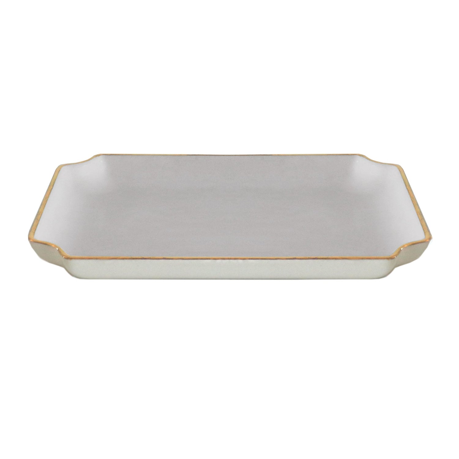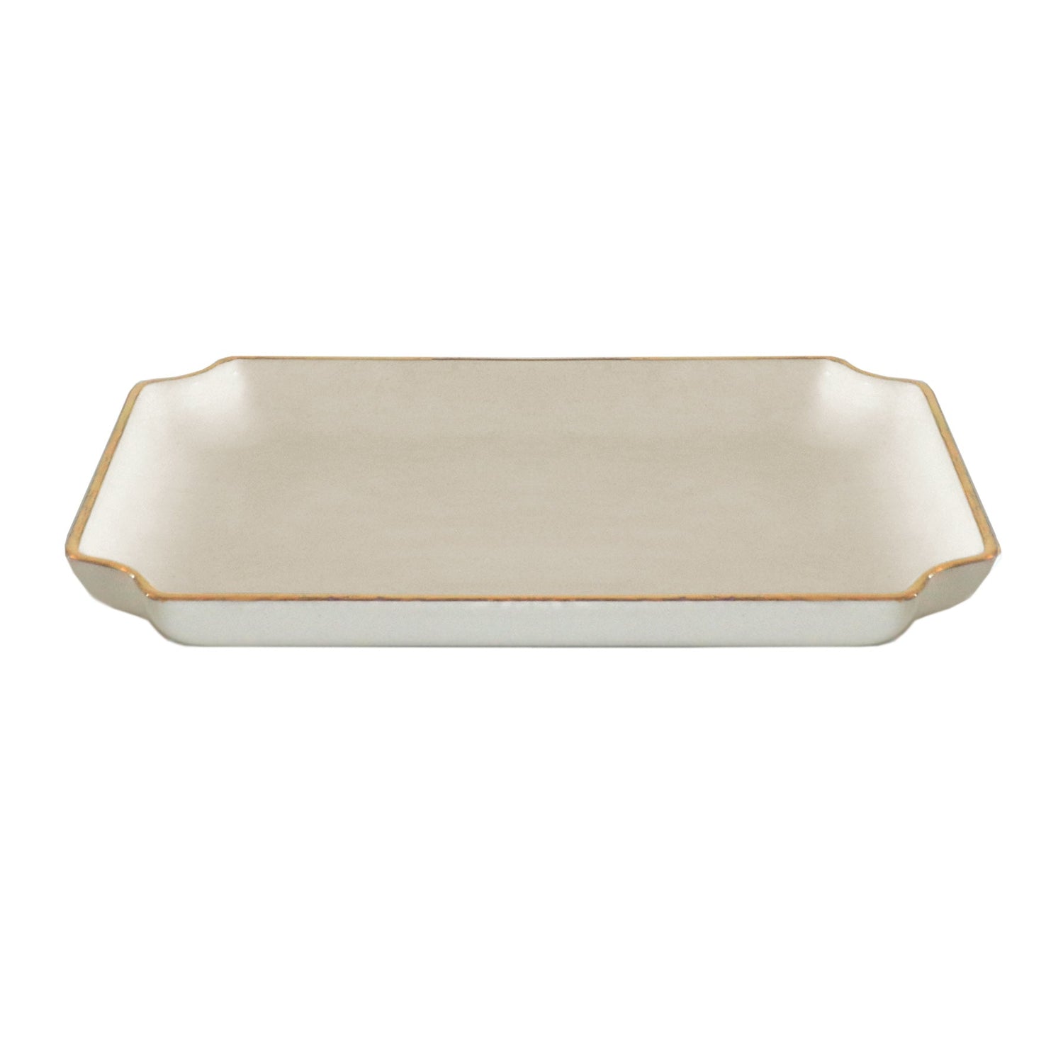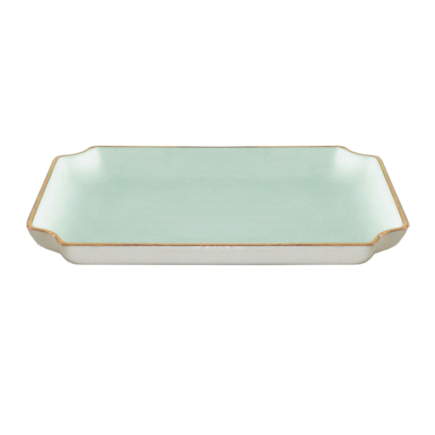 Our classic trays are hand-painted by a Ruby Clay artist before being fired for a beautiful and durable finish which is food and water safe. This style features a hand-painted 22K gold trim.