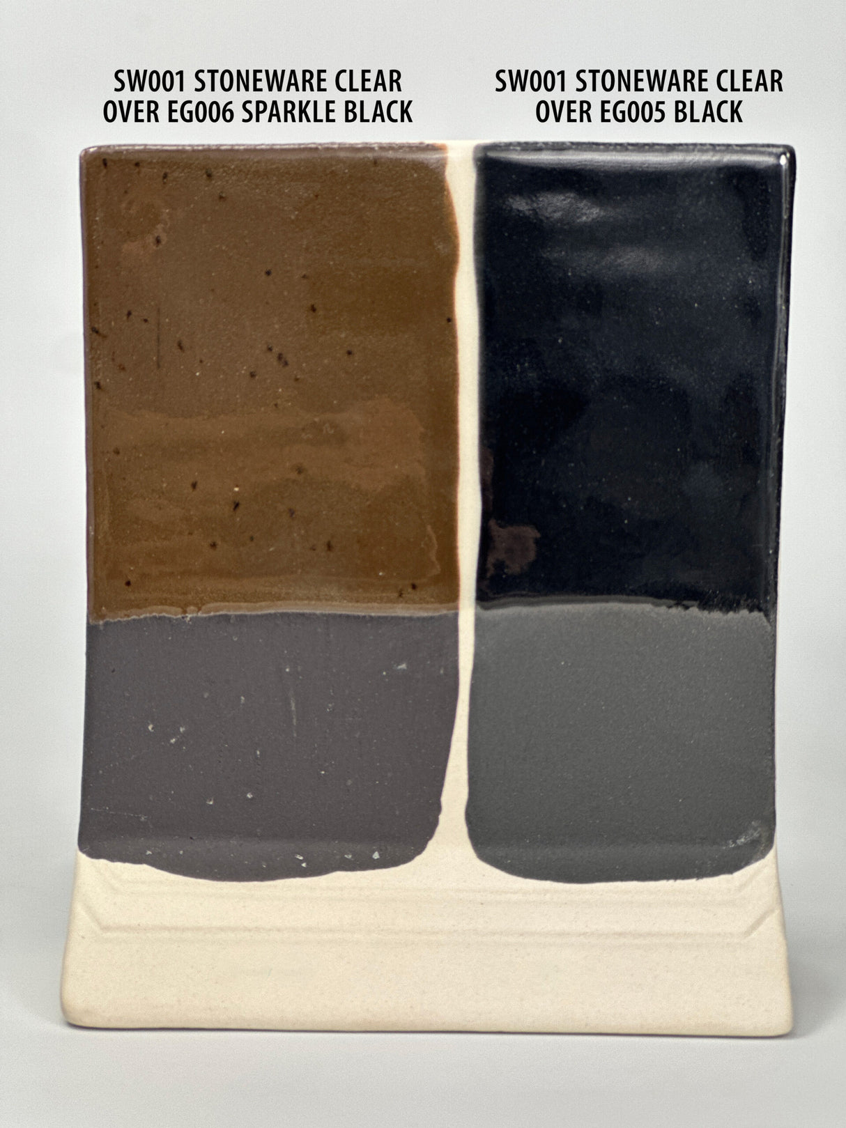 SW004 Zinc-Free Clear is recommended for a black finish. SW001 Stoneware Clear will change the color to a rich brown and affect the sparkle.