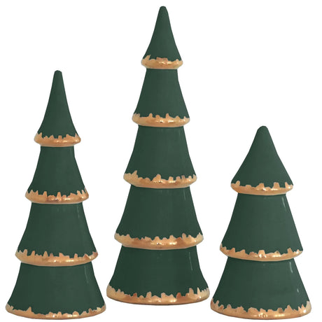 Holiday Green Fluted Christmas Trees with 22K Gold Brushstroke Accent