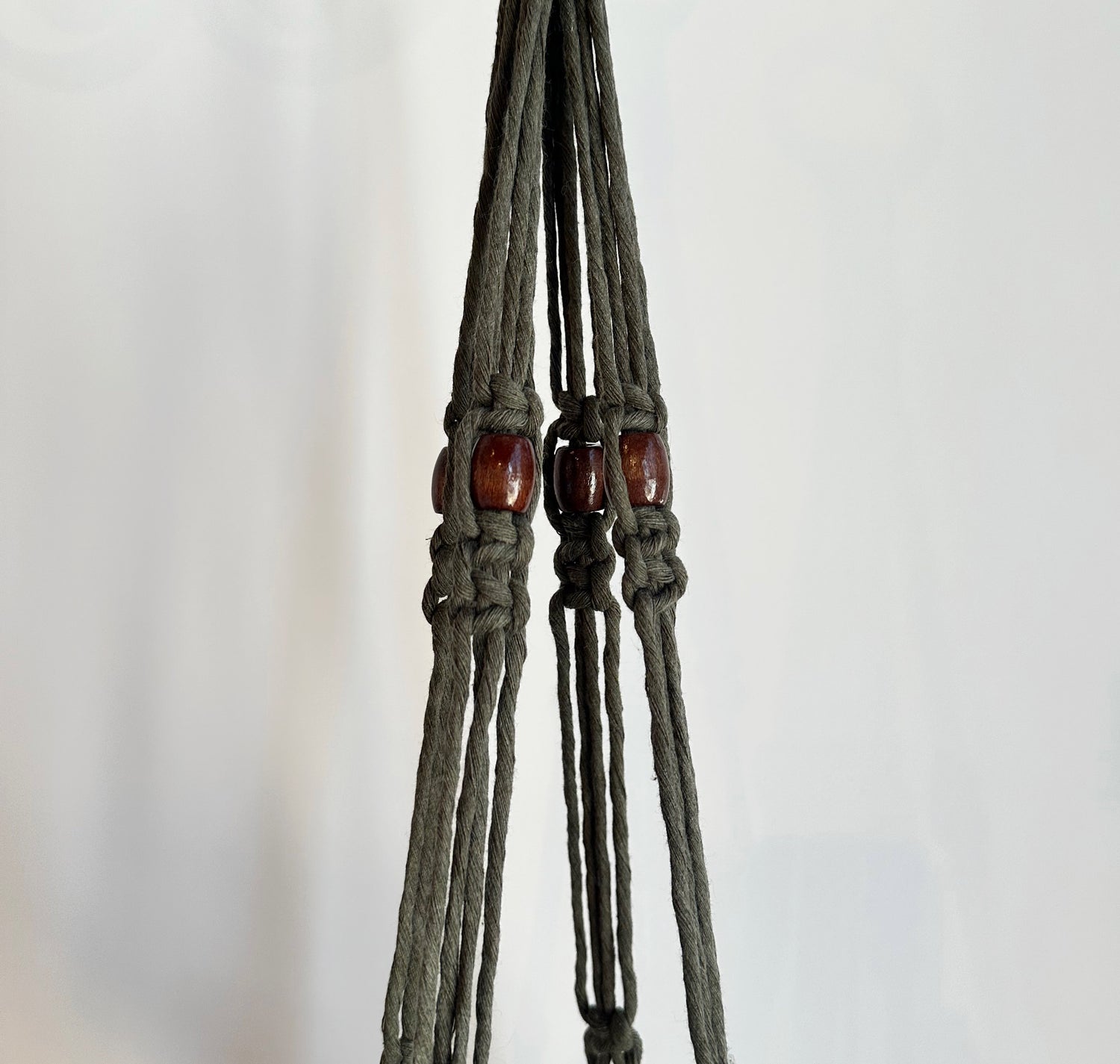 The glazes in on this hanging planter are so unique! They remind us of a shimmering fish! This piece is ready to hang and features handmade macramé.
