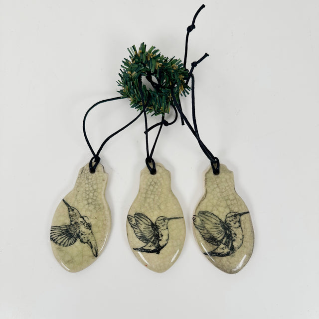 Hummingbird Ceramic Christmas Bulb Ornaments- Set of Three | Lisa Goldfarb