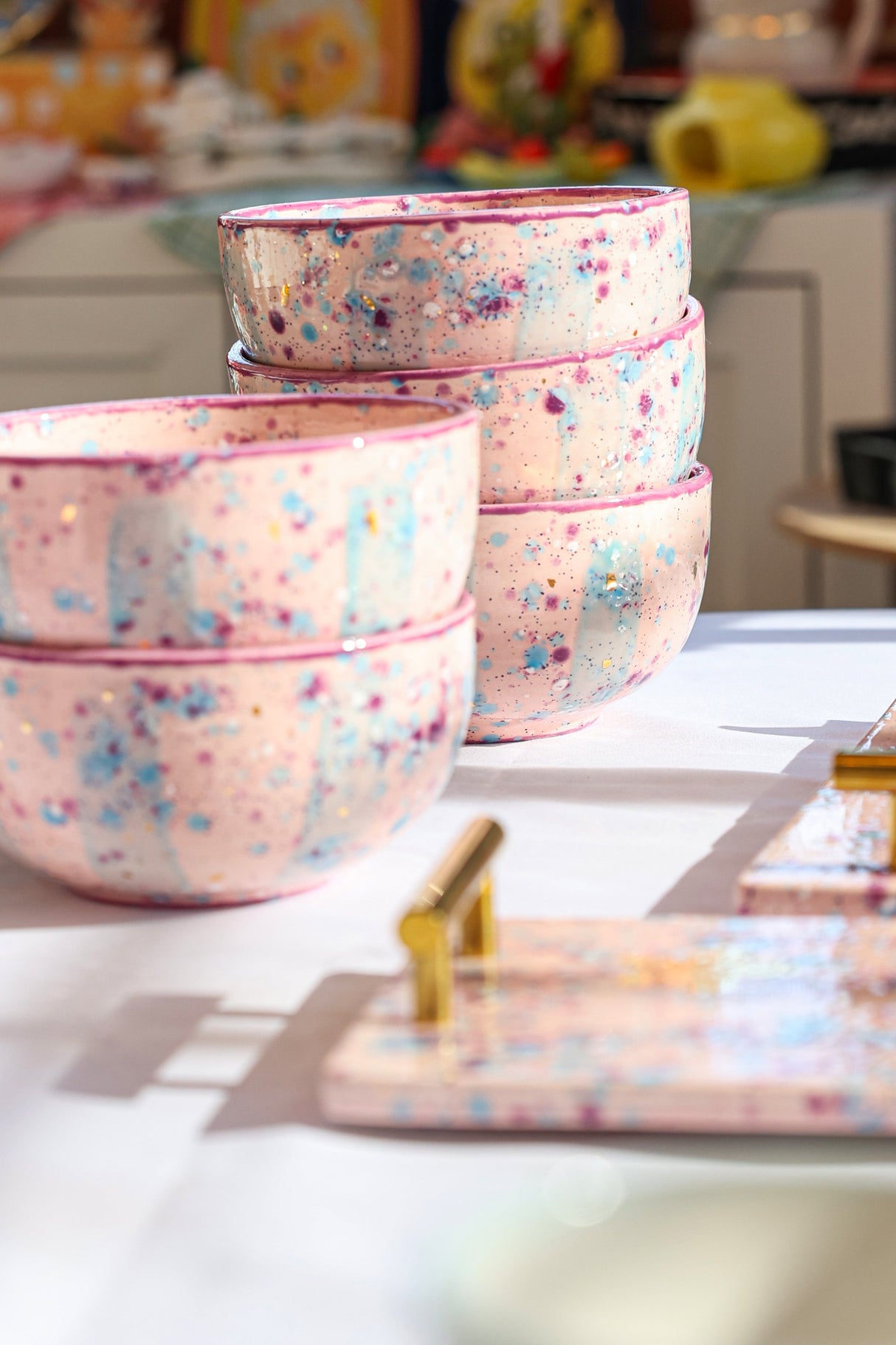 The small bowl is full of color and splattered with gold for the ultimate impact. Perfect for soup, ice cream, and more!