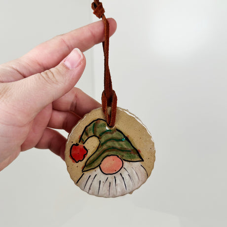 Hand Painted Ceramic Gnome Ornament- B | Triska Pottery