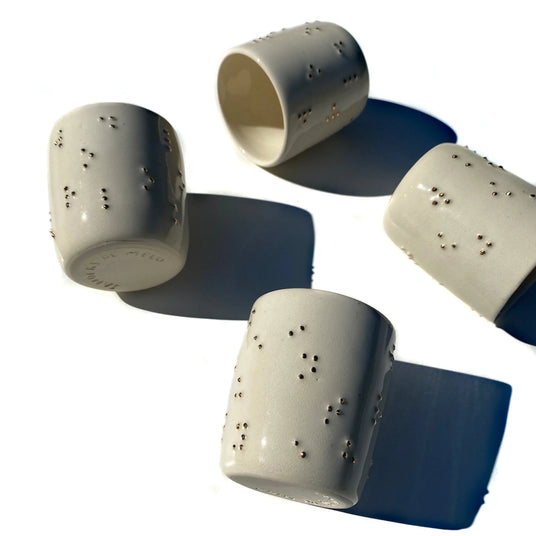 Amy Sanders de Melo is a Colombian, American artist and educator living and working in Oklahoma. As a multidisciplinary artist with visual impairments, she strives to create ceramic work and installations that speak to the resiliency of the human spirit. She utilizes Braille on porcelain as a way of telling stories, encouraging meditation, and creating space for grieving and healing.