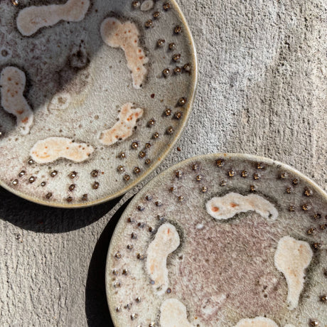 Sanders de Melo currently resides in Tulsa and is member at Red Heat Ceramics, an artist-run, community ceramics studio. She received her BFA from the University of Oklahoma where she studied ceramics, sculpture, and filmmaking. In 2015, she spent two months in Italy completing an artist residency and collaborating with international artists on public art mosaics. Following this, she spent two years as an art educator in an after school arts program for underserved youth. Sanders de Melo has exhibited her work regionally and nationally and she is a recipient of the inaugural Emerging Artist Cohort from the American Craft Council in 2021 and The Color Network + Arrowmont Fellowship in 2023.