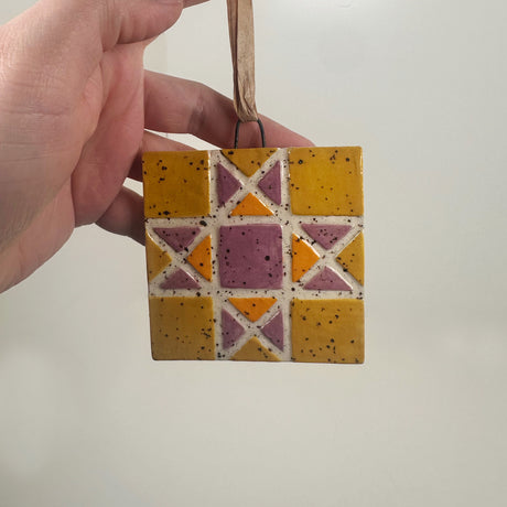 Gold, Purple, & Orange Ceramic Quilt Ornament | Perrier Pottery