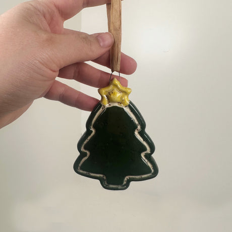 Green & Red Ceramic Quilt Ornament | Perrier Pottery