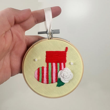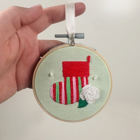Embroidery Hoop Ornament with Embroidered Stocking- Green | Dangit Design