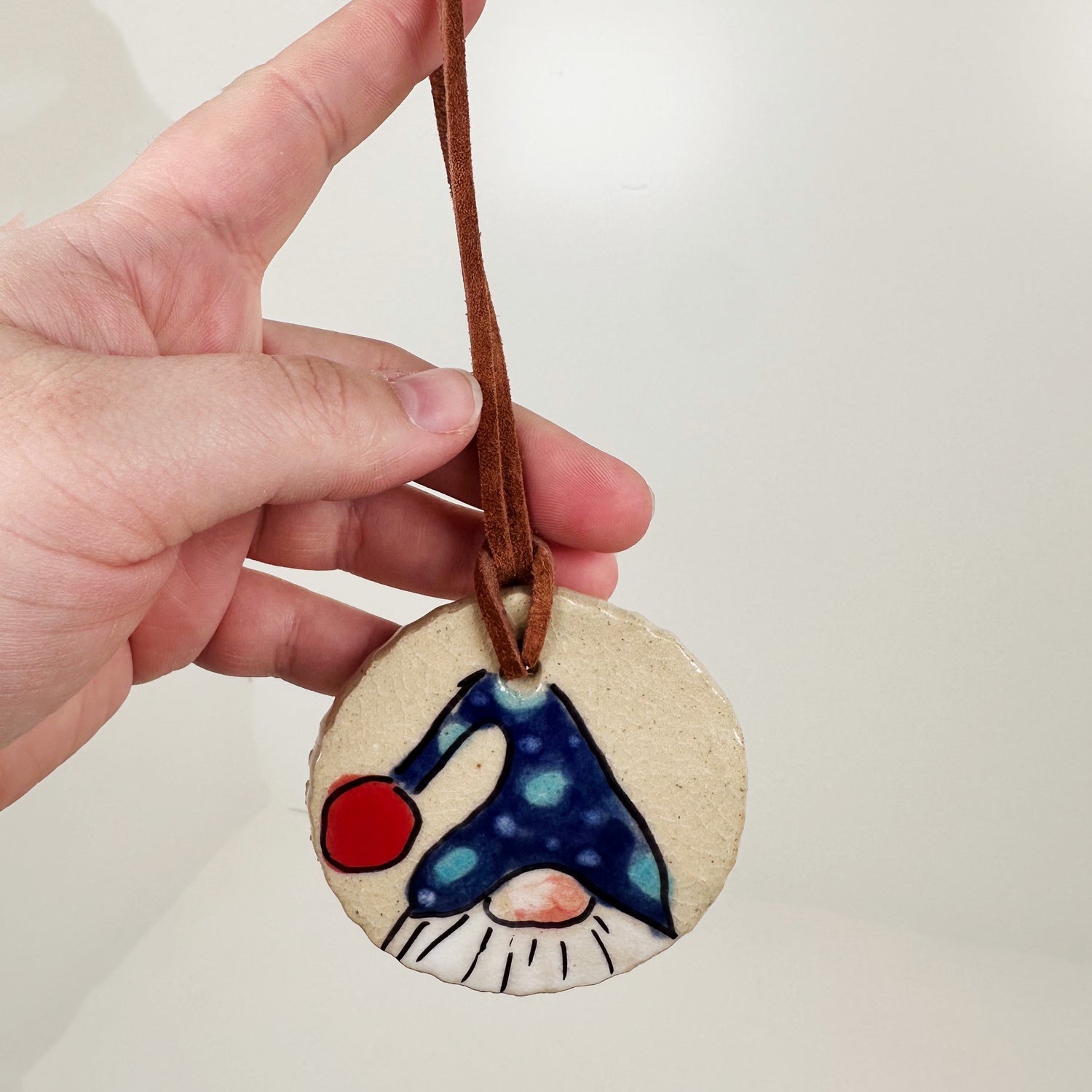 Hand Painted Ceramic Gnome Ornament- A | Triska Pottery is backordered and will ship as soon as it is back in stock.