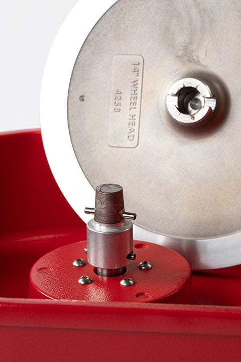 Skutt has the only wheel head on the market that can be popped off with the flick of a wrist. On their removable splash pan models this allows them to utilize a one-piece splash pan that won’t leak and can be carried directly to the clay reclaimer in one piece without having to empty it and take it apart.