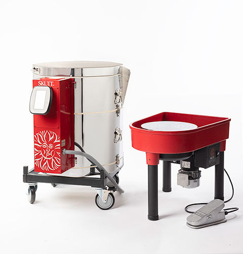 The Skutt Classic pottery wheel is the the go to for professional Potters. It is easy to clean because the wheel head comes off. The heavy, casted aluminum built-in splash pan gives you the grounded leverage you want when centering large pots. From the motor to the foot pedal, these things are built to handle all the abuse the you can dish out. Plus it’s all backed by the best 10 year parts and labor warranty in the business.