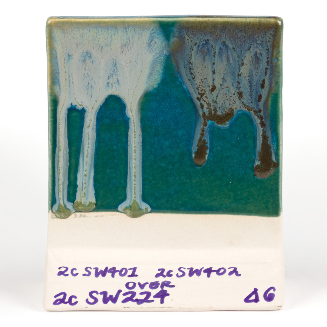 Cone 6 oxidation (First Image): Milk Glass is a glossy, semi-opaque white glaze that breaks transparent over texture. This glaze is stable.