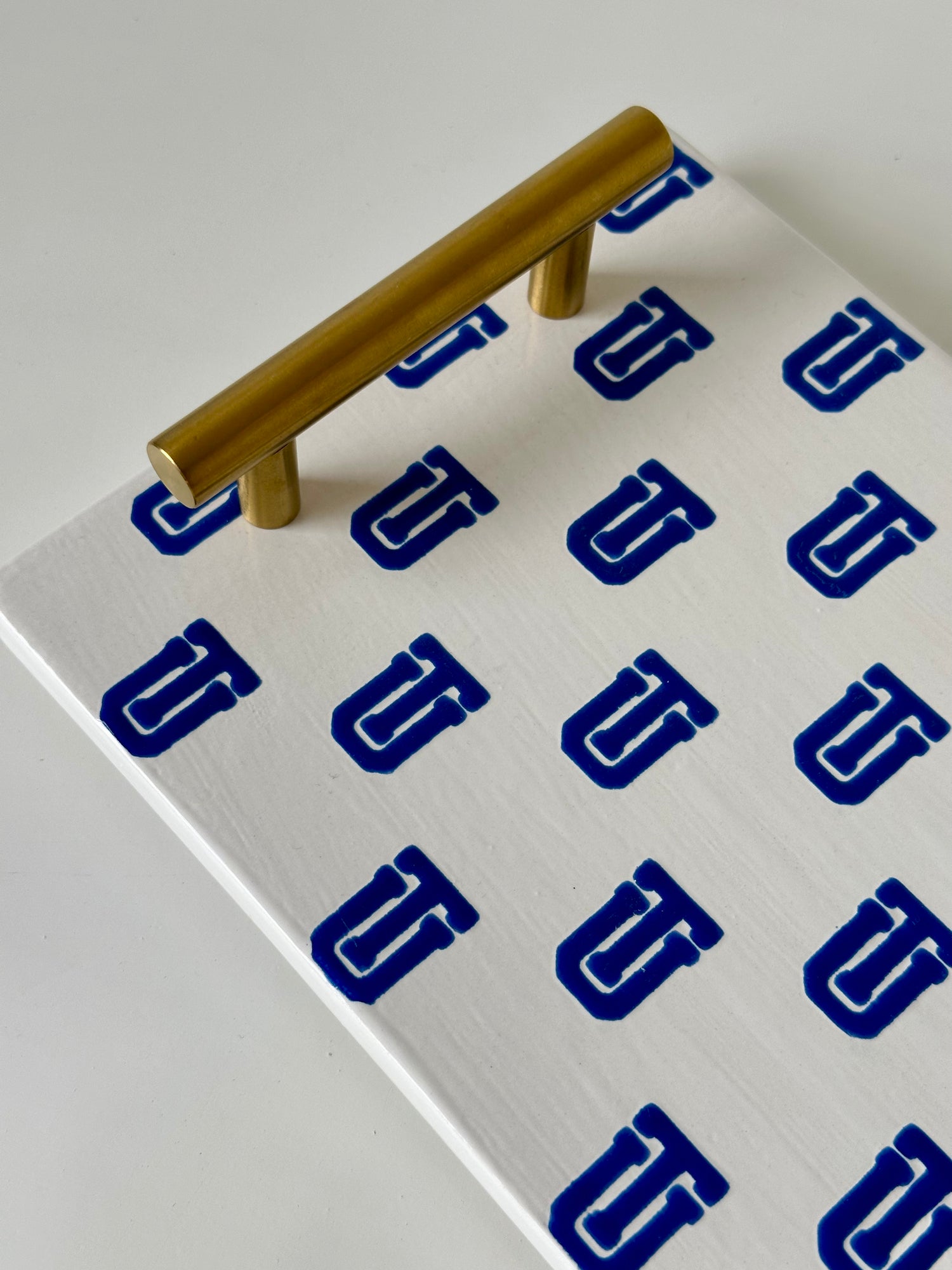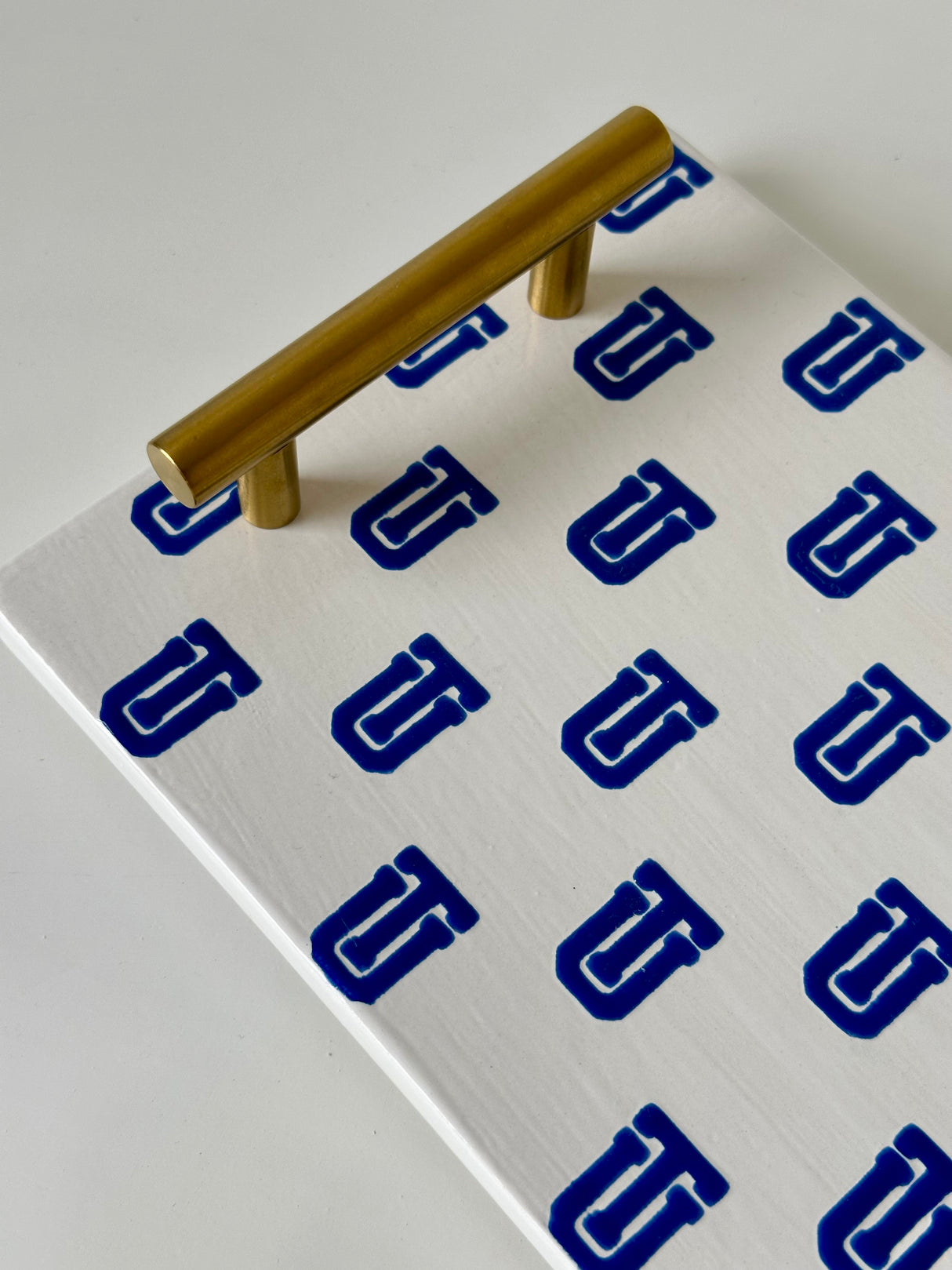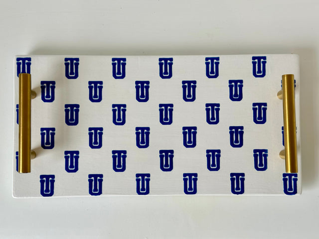 Our custom TU cheese trays are hand painted by a Ruby Clay artist at our studio in Tulsa, Oklahoma.