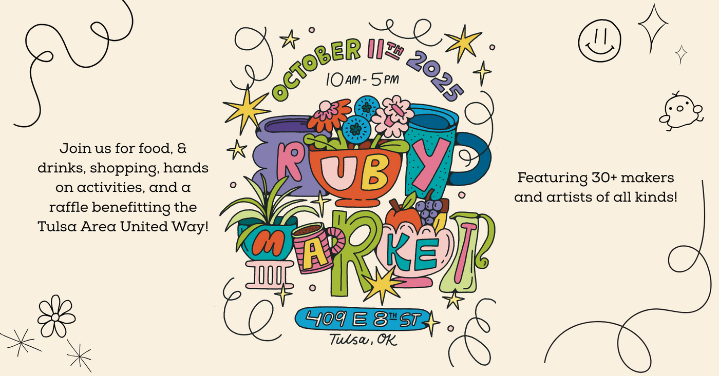 Ruby Market is a small art market featuring artists of all kinds, food vendors, art making activities, and much more at our shop in downtown Tulsa, Oklahoma! We've hosted this market twice, and you all came en force to support all of the ceramic and non-ceramic artists who sold work with us. For many of them this was their first market, and they were all very encouraged by your enthusiasm! A big thank you to everyone who participated!