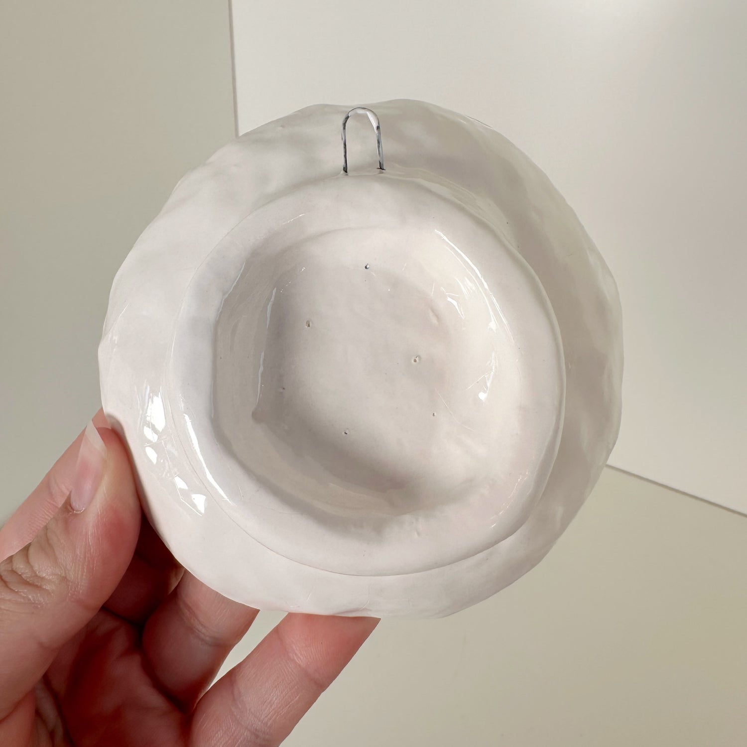 Featuring vintage cherub artwork, this handmade plate includes a hook on the back for hanging. The hook is low profile enough to allow it to sit flatly on a surface. The 22k gold accent rim ties this classically styled piece together!