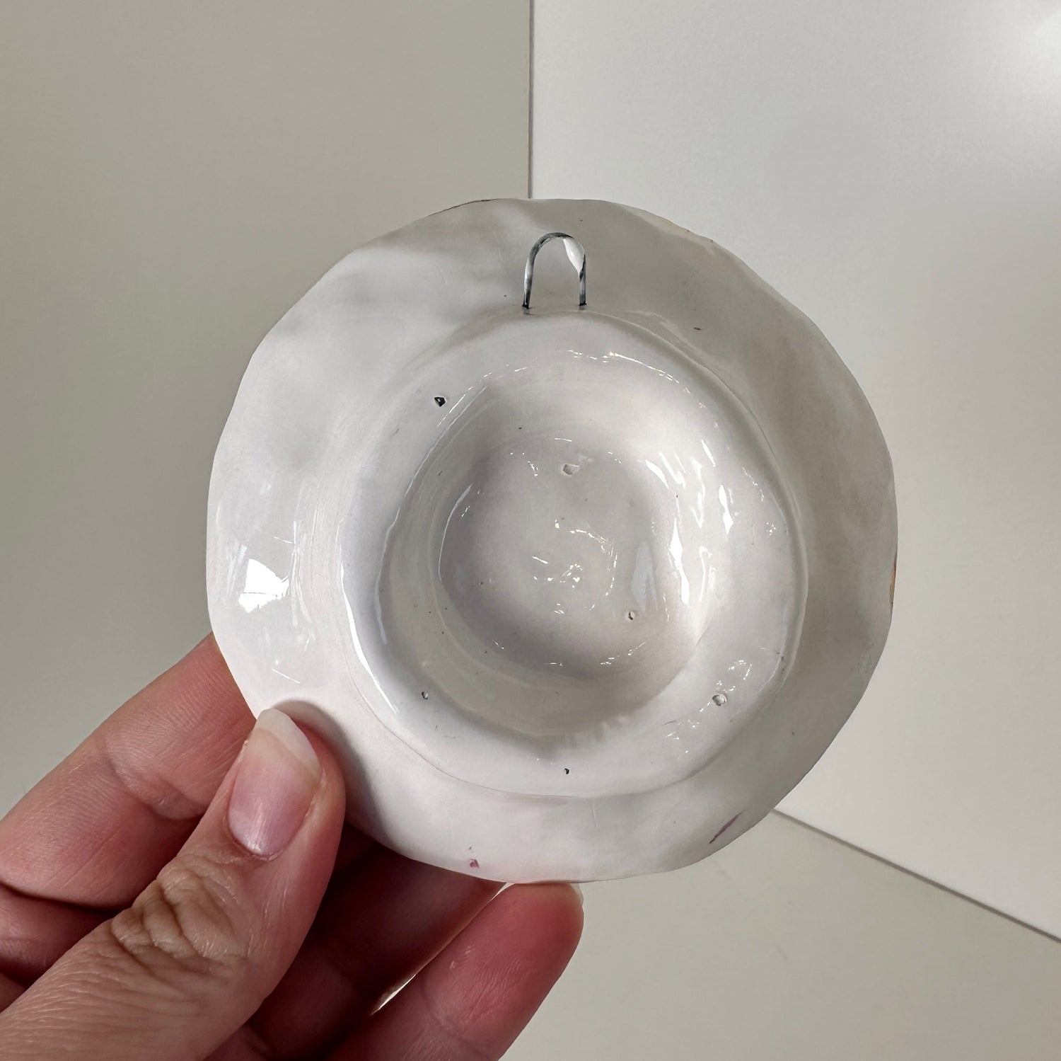 Featuring vintage cherub artwork, this handmade plate includes a hook on the back for hanging. The hook is low profile enough to allow it to sit flatly on a surface. The 22k gold accent rim ties this classically styled piece together!
