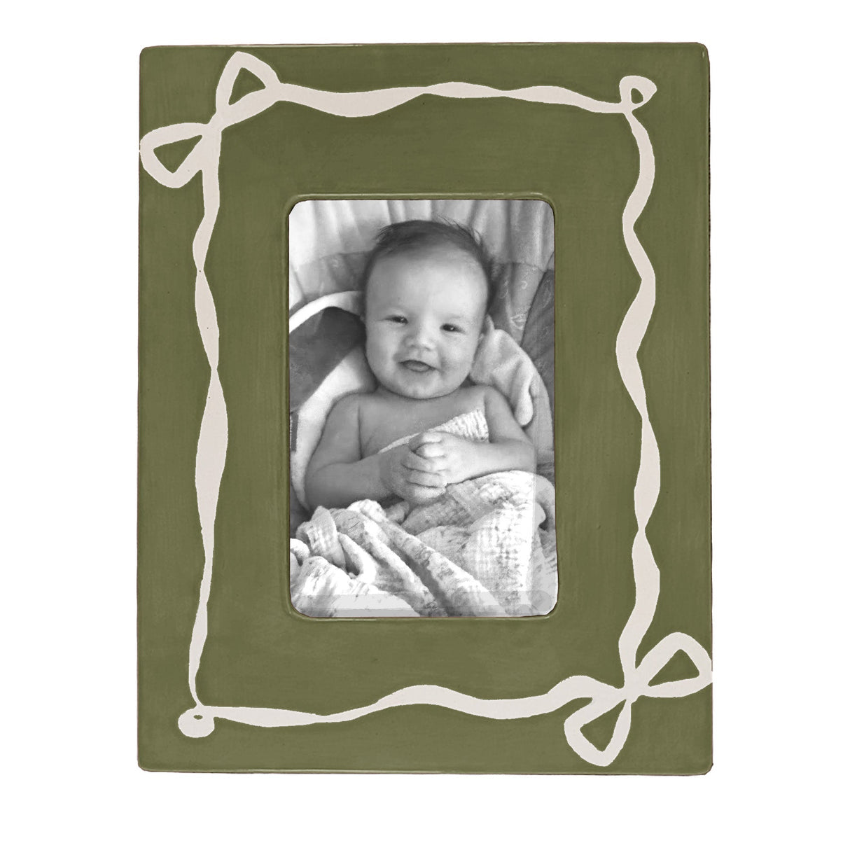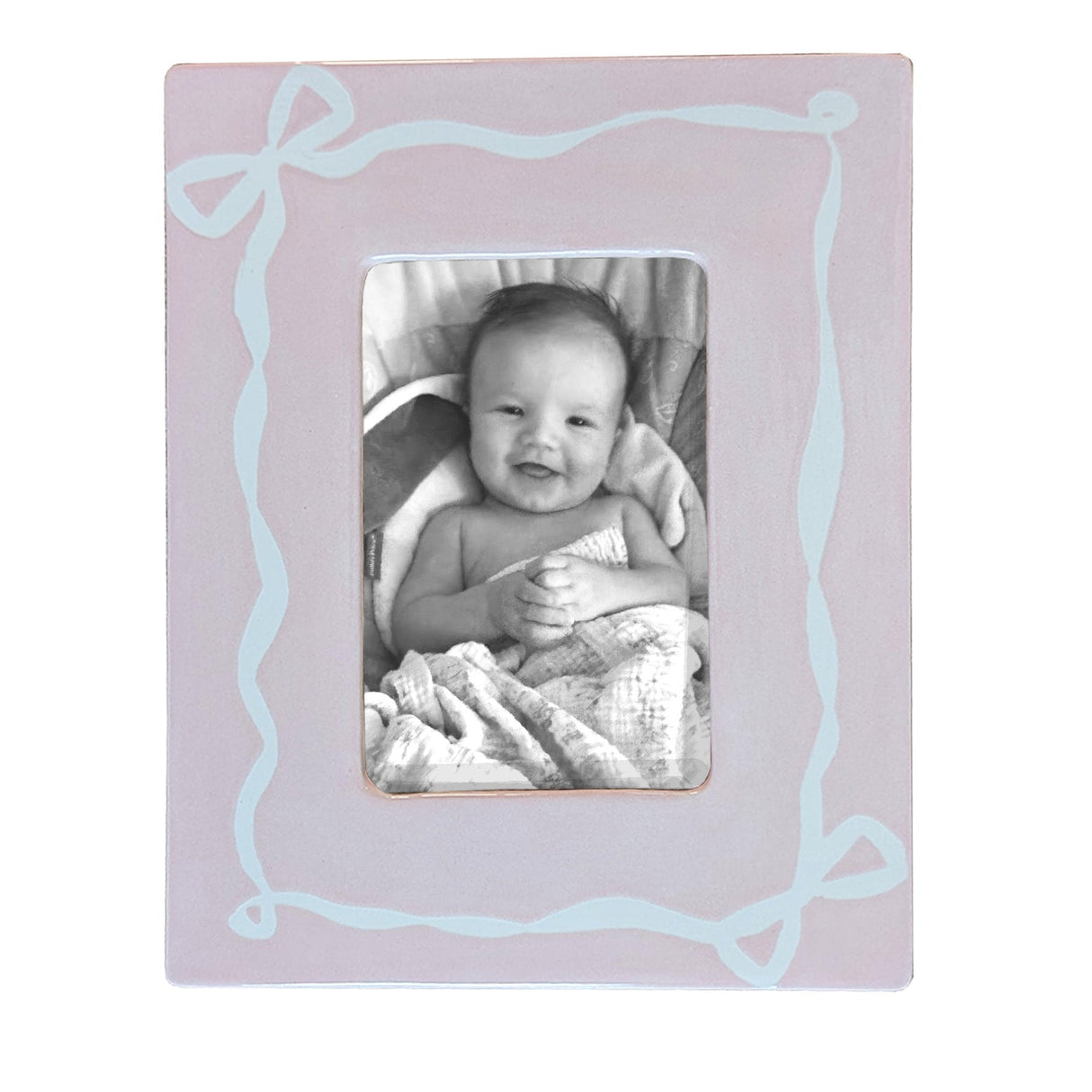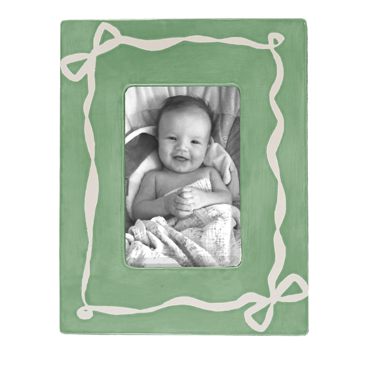 Showcase life's sweetest moments in this timeless and colorful photo frame. Each one is hand-painted by a talented Ruby Clay artist with our new favorite motif composed of ribbons and bows. Choose from a fun array of colors for a perfect and personalized gift!