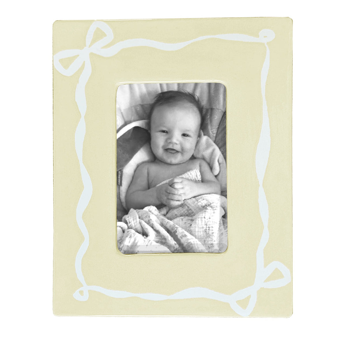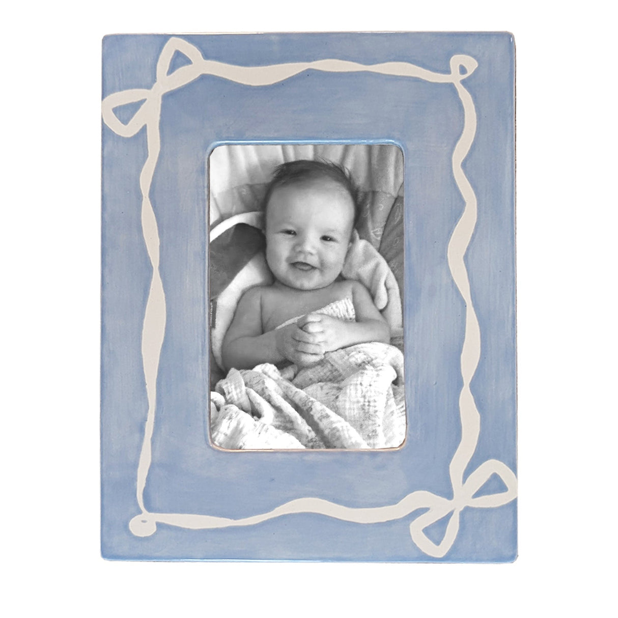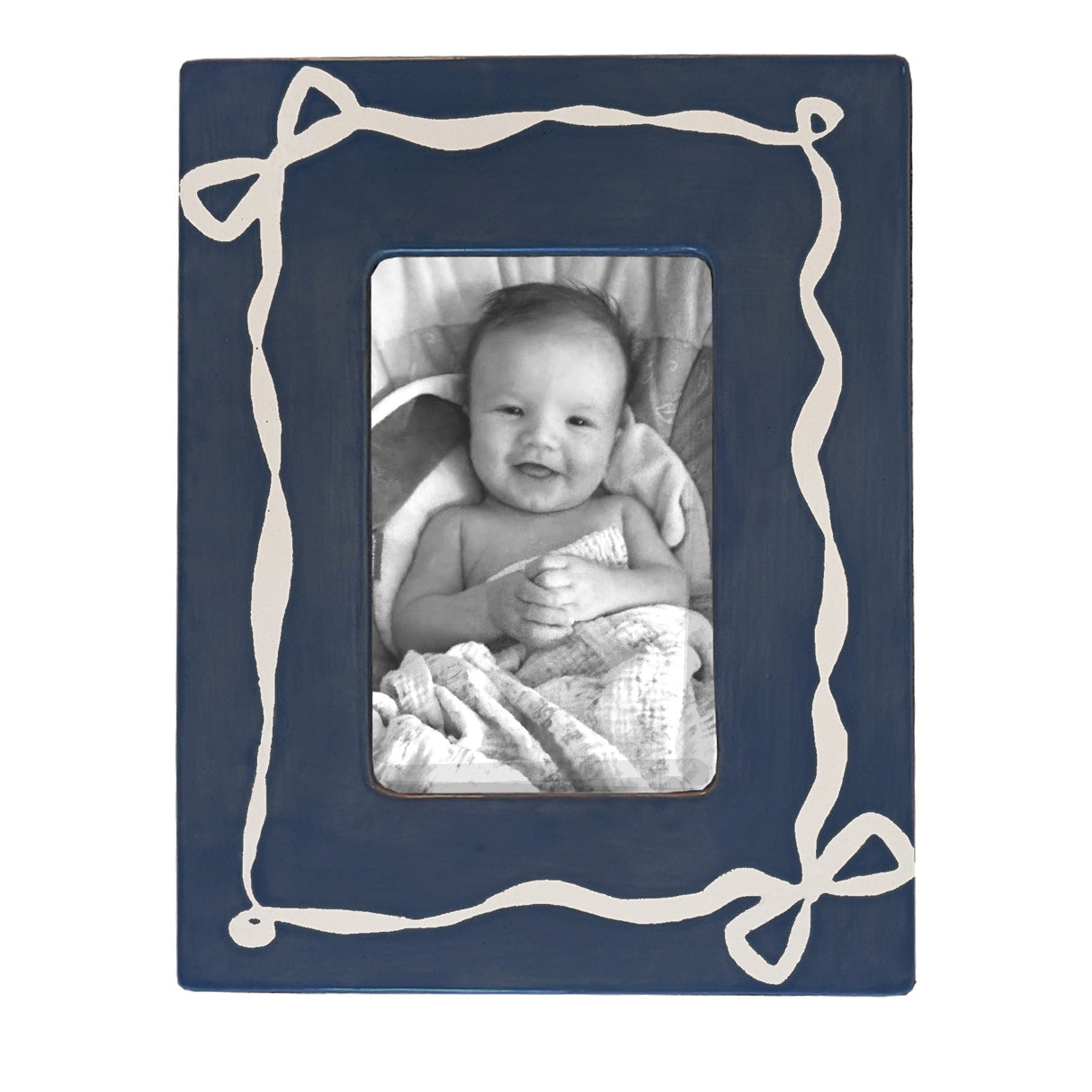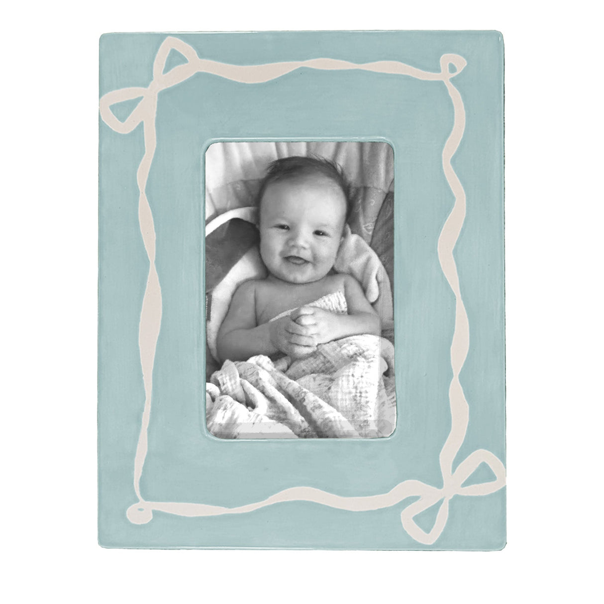 Showcase life's sweetest moments in this timeless and colorful photo frame. Each one is hand-painted by a talented Ruby Clay artist with our new favorite motif composed of ribbons and bows. Choose from a fun array of colors for a perfect and personalized gift!