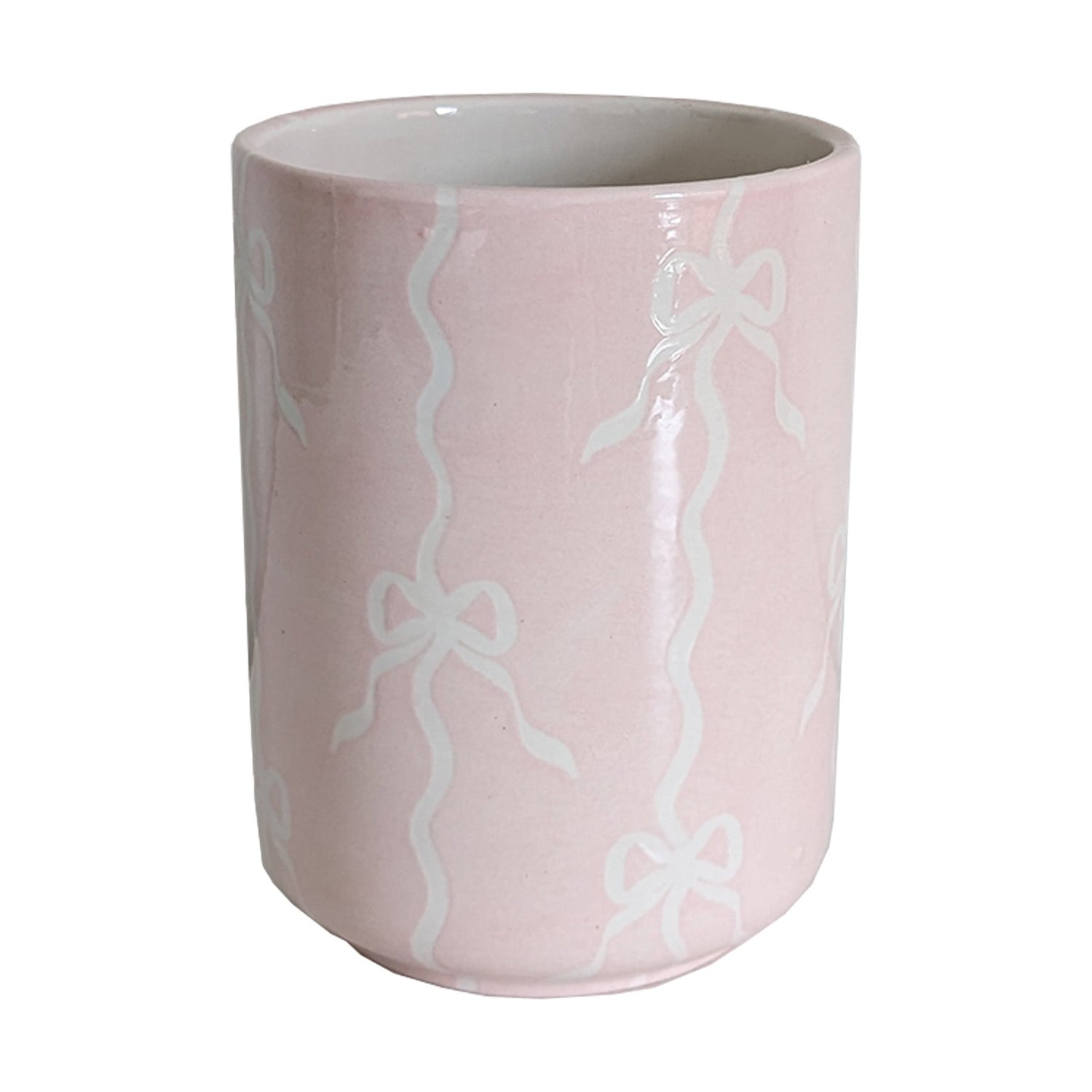 Bow Stripe Large Vase/ Utensil Holder | Wholesale - Cherry Blossom Pink