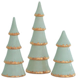The gorgeous colors and handcrafted charm of these trees make an artful and unique addition to your home for the holidays. Mix and match them to create a personalized and stunning vignette on your holiday table or mantle or sprinkle them about for merry and bright touches throughout your home. Each tree is glazed by hand and adorned with a freehand 22K gold brushstroke trim.