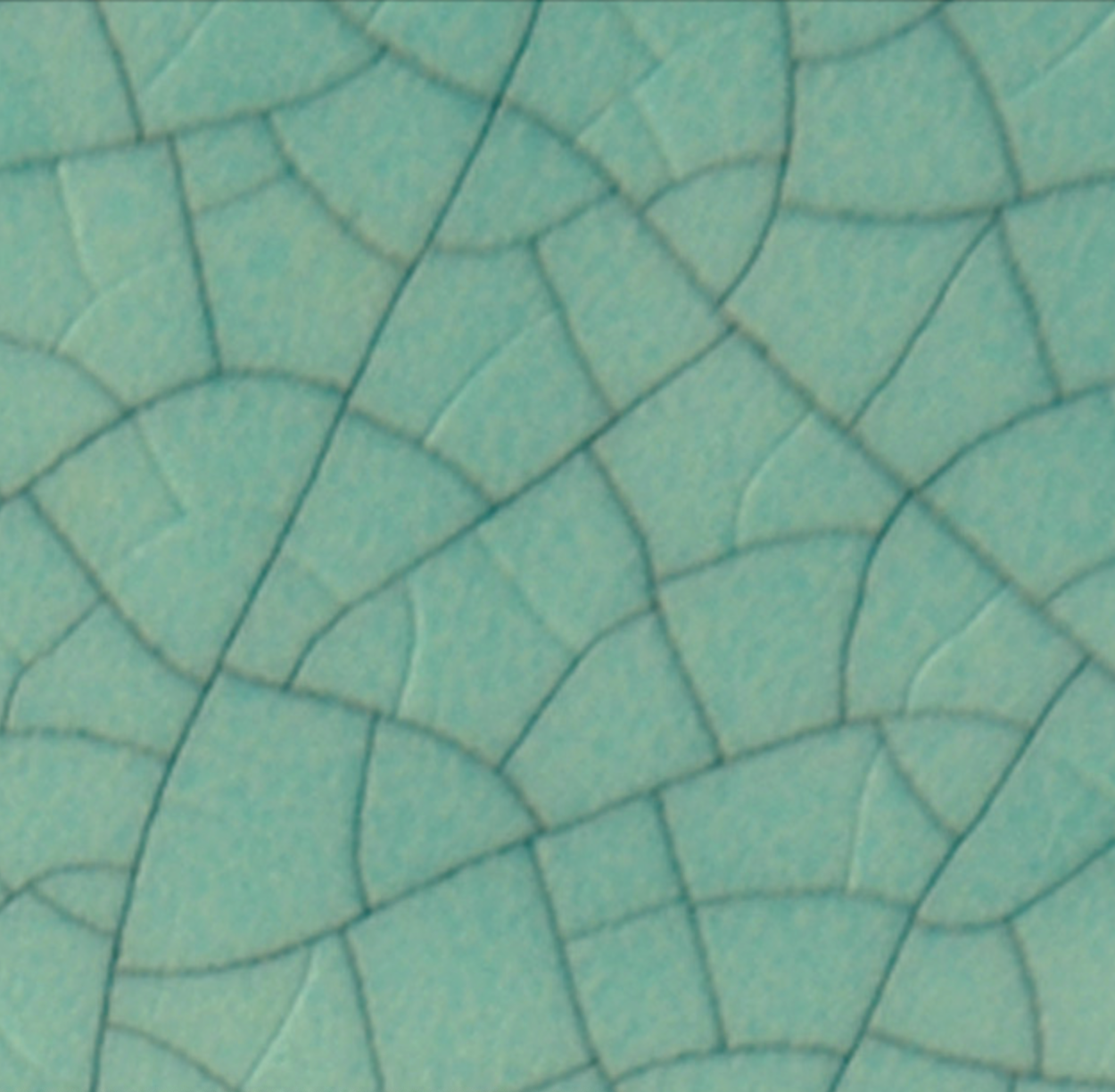 Cone 06, Photo 1: Creates a green cracked surface and allows underlying designs to show through.